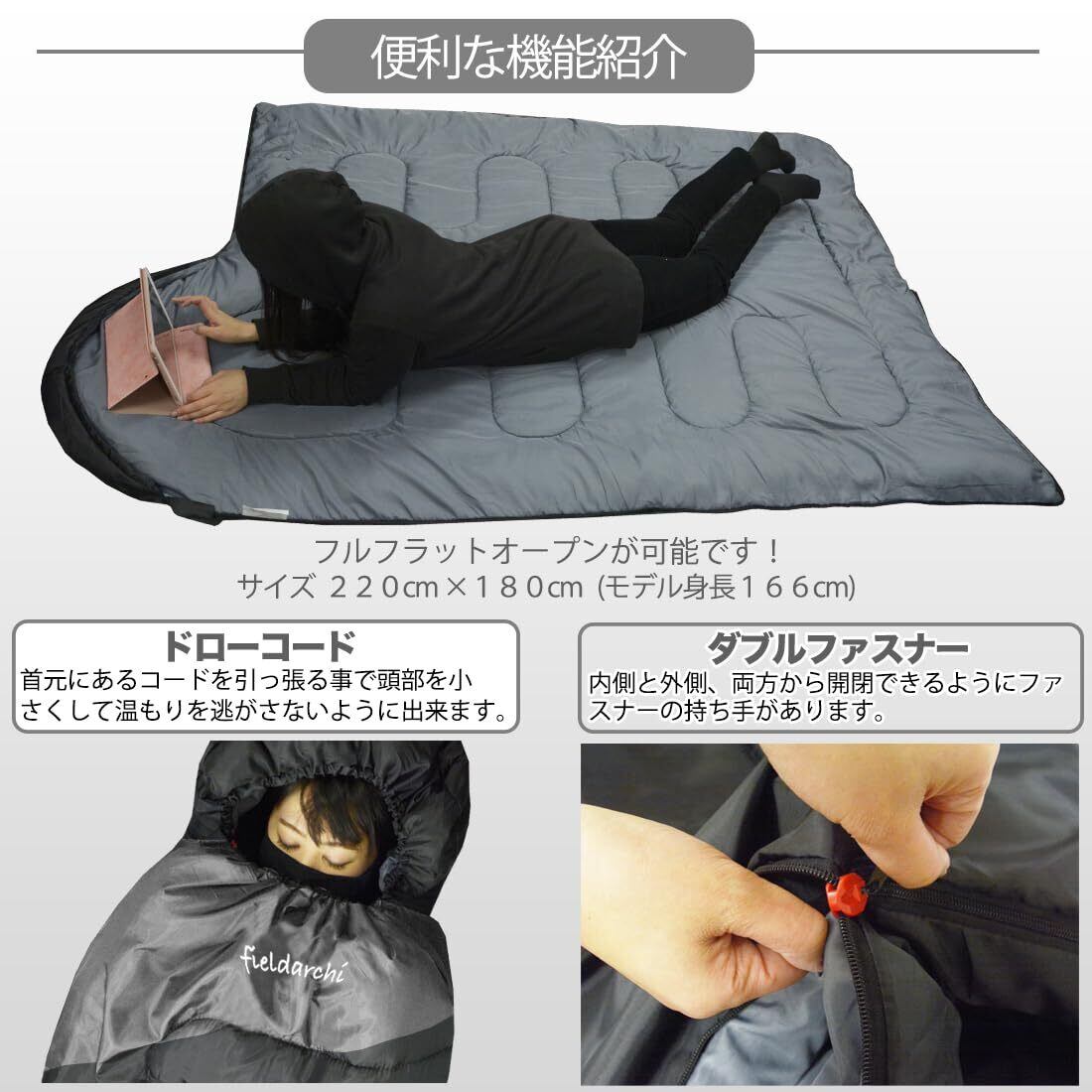 【選ばれるワケ1】アウトドアはもちろん、車中泊や仕事場での仮眠、自宅での敷き布団、掛け布団代わりにもなり災害時にも役立つオールシーズン使用可能なシュラフです。足元を開けて温度調節ができる寝袋です。