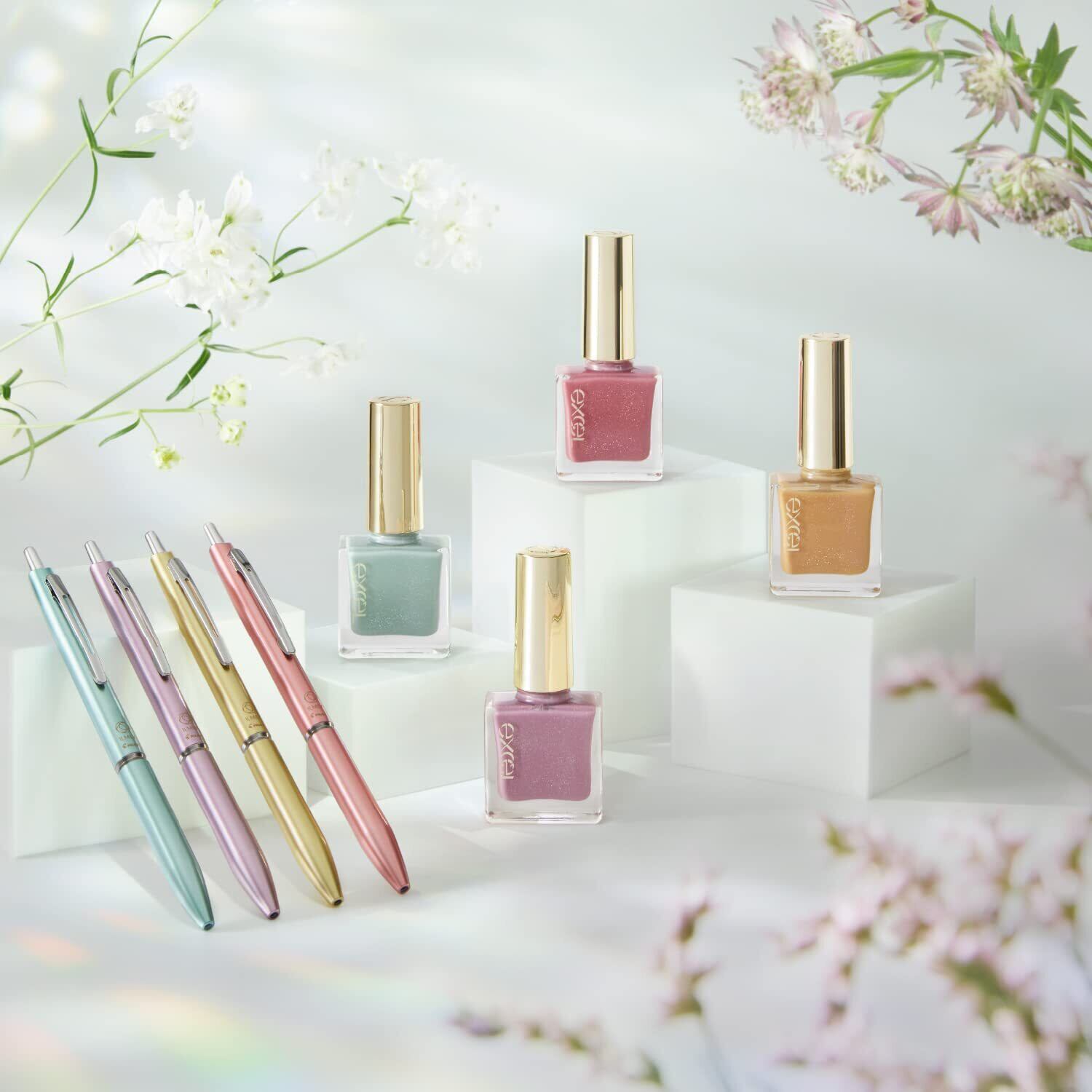 エクセル初の異業種コラボ企画!パーソナルカラーに合わせたネイルとボールペンで手元をより美しくコーディネート。NL43(心のやすらぎ ): 涼しく穏やかなアイシーグリーン ①光を取り込み、つるんと透明感のある仕上がり 一度塗りでシアーに、二度塗りで見たままの色に ②なめらかに伸びるテクスチャーでムラにならない ③ケア成分を贅沢に配合 爪のことを考えた処方 ④毎日使いたくなる 高い速乾性と落としやすさ