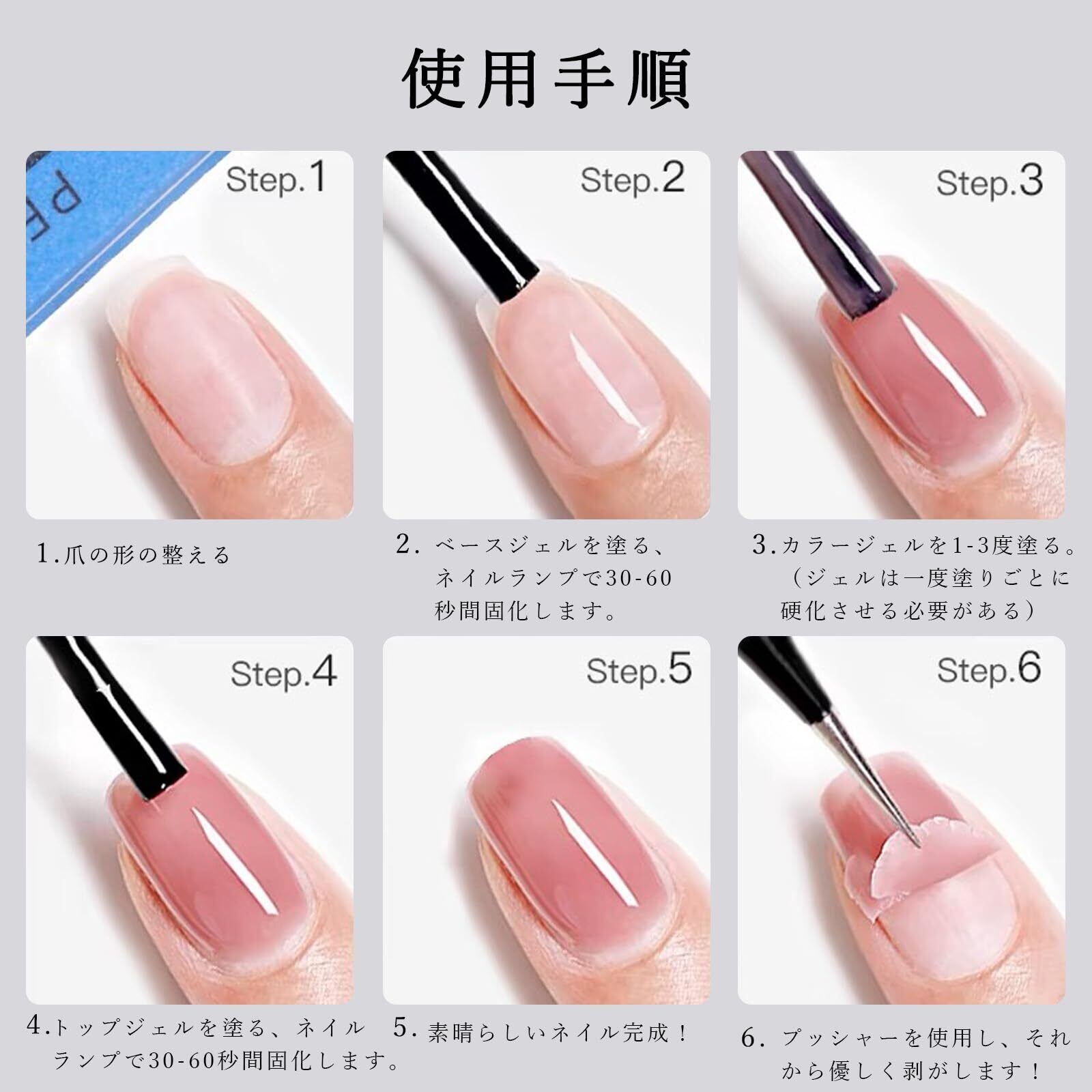 【剥がしやすい】:Missgooey ピールオフベースは、適切な施術の下で通常1-3日持続します。イベントや週末だけのネイルを楽しみたいお客様や、練習などにもおすすめです.(温かいお知らせ:ネイルを長持ちさせたい場合は、爪の表面をバッファーで削り、磨くことをお勧めします。)