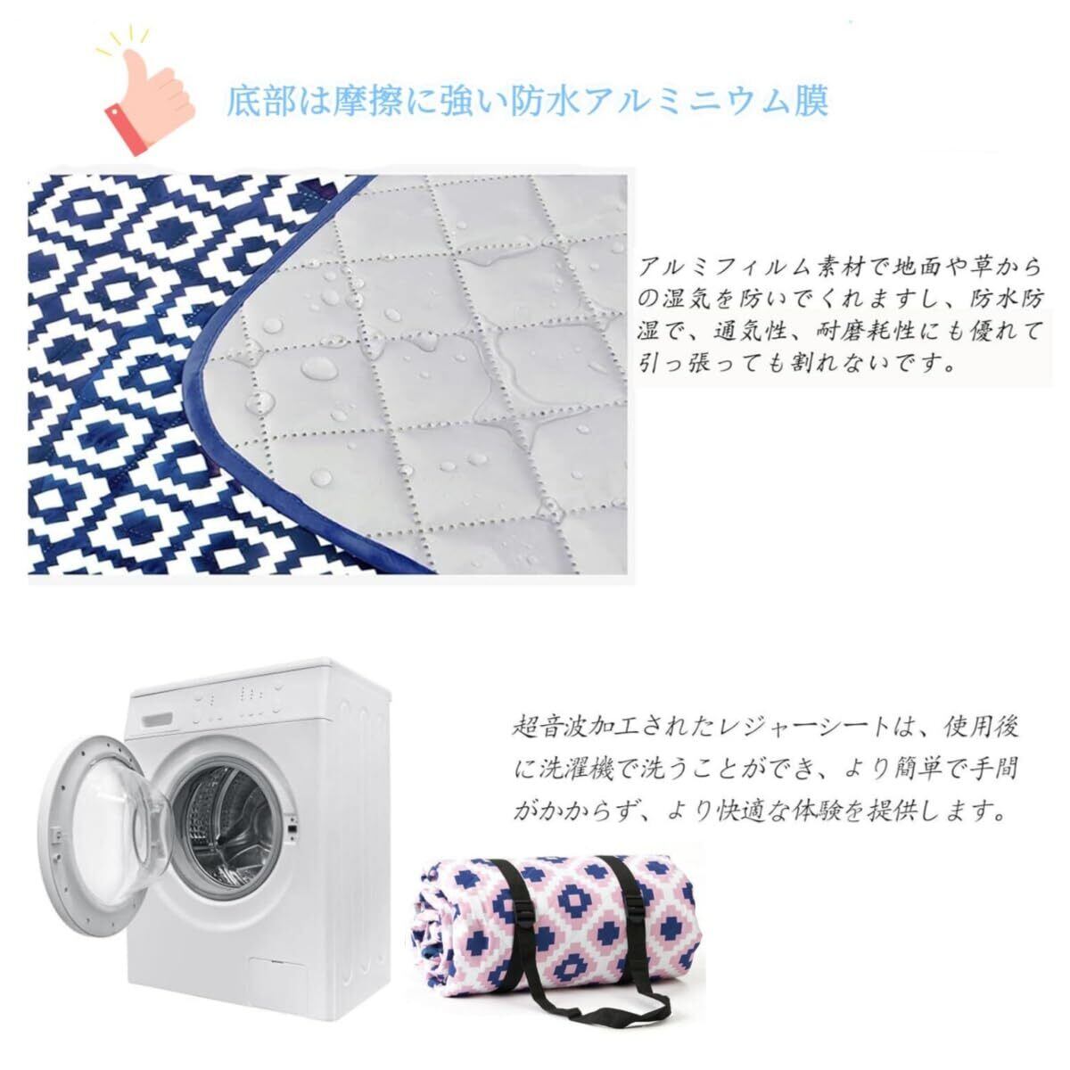 【完全洗濯可能なピクニックシート】:ピクニックシートは補強技術を使用し、各層が非常に丈夫で耐久性に優れています。大面積が汚れた場合、洗濯機で簡単に洗濯できます。何度も洗うと型が崩れしにくい!