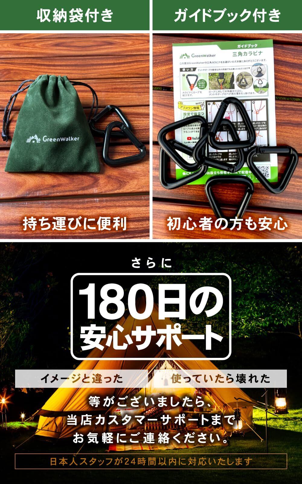 【国内耐久試験済】 GreenWalker 三角カラビナ タープ テント ロープ キャンプ アウトドア