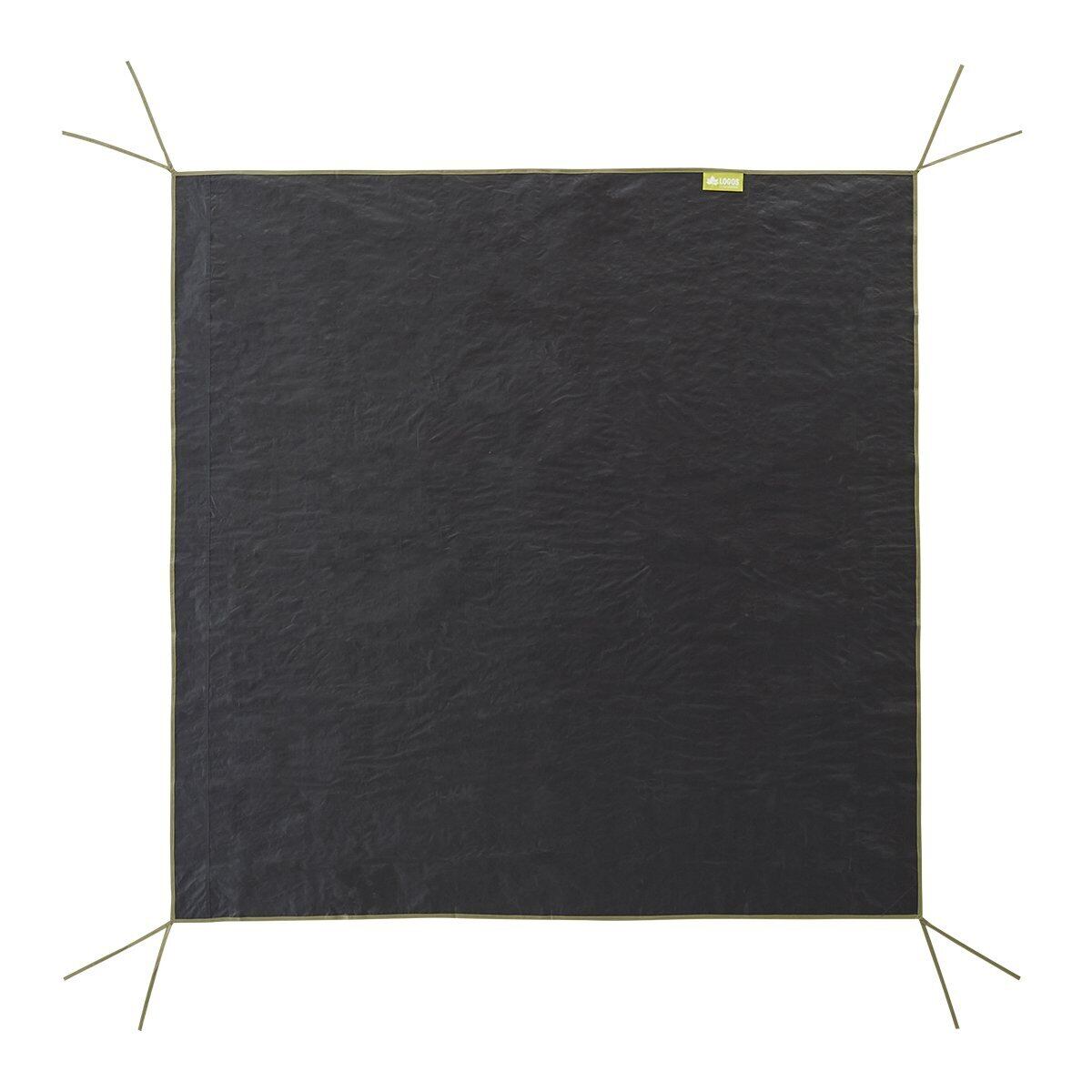取付けは簡単。フロアシートと地面の間に敷き、四隅をテントフレームに結びつけるだけ。