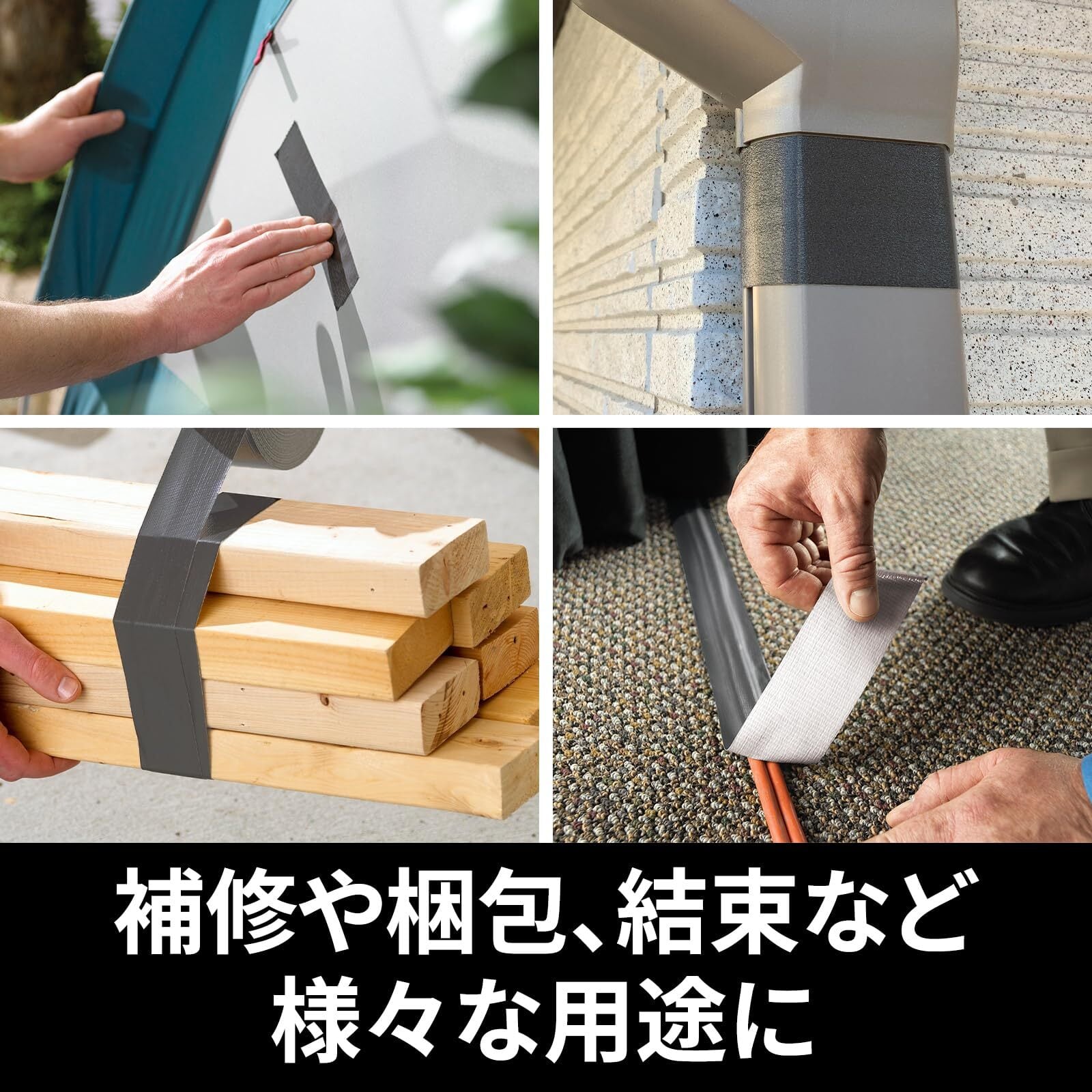 一時的な屋内外の補修、アウトドア用品の補修、梱包、結束、固定・仮固定に。優れた耐候性と強力な接着力を持った補修用ダクトテープです。