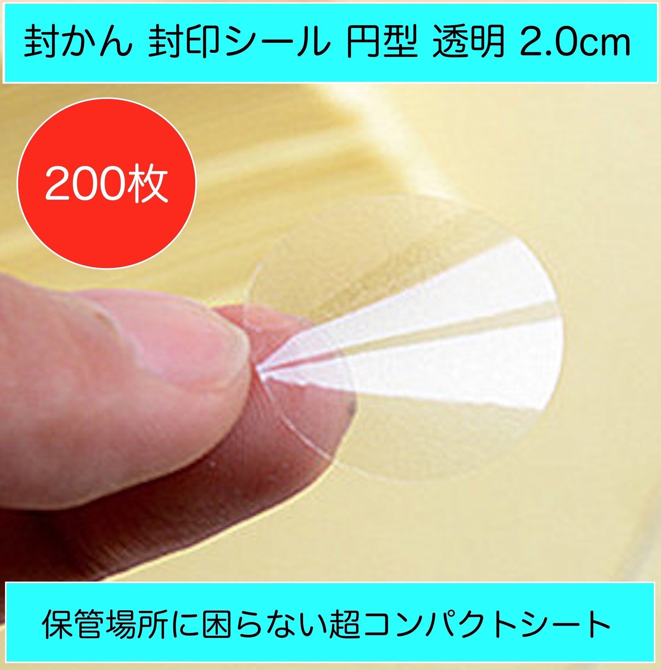 Creve Cell 封かんシール 封印シール 円型 丸型 透明 封筒 手紙 2.0cm 20mm 保管場所に困らない超コンパクトシート (200枚)