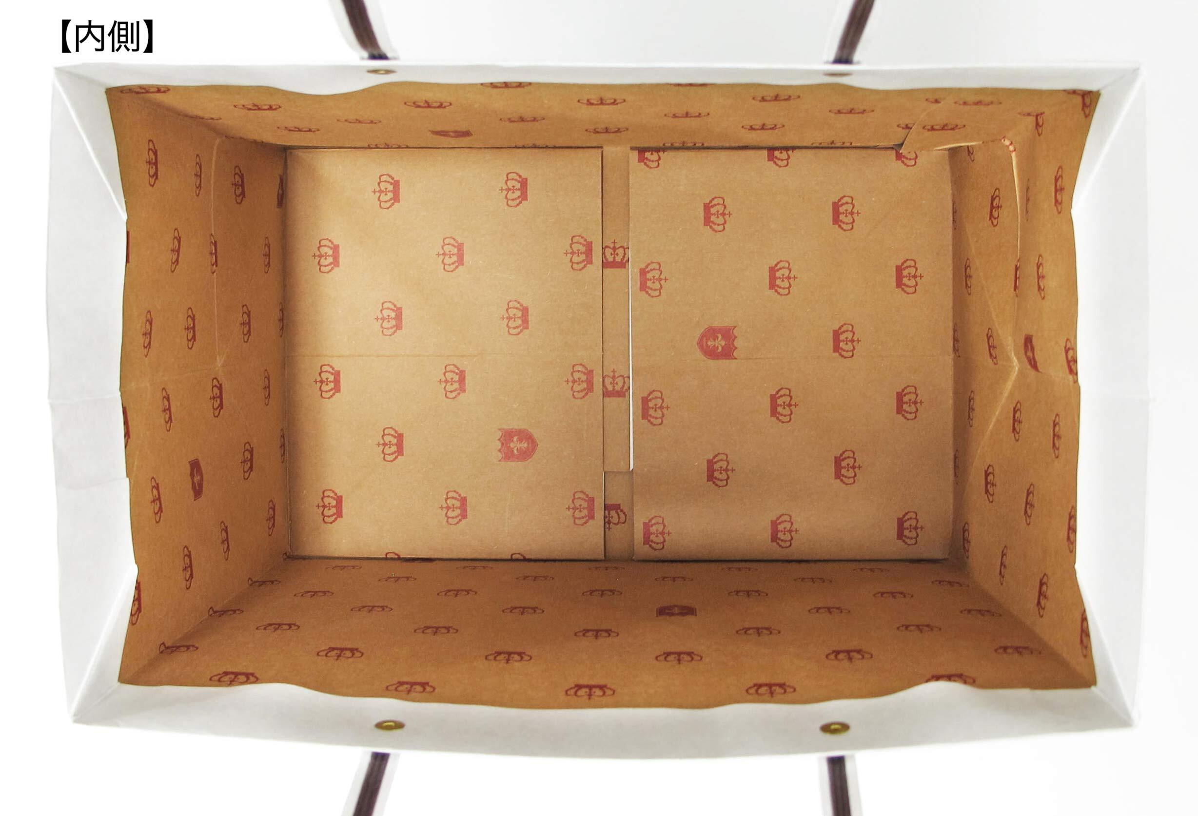 表側が無地で、内側には王冠と百合の紋章の柄が入っているおしゃれで使いやすい紙袋です