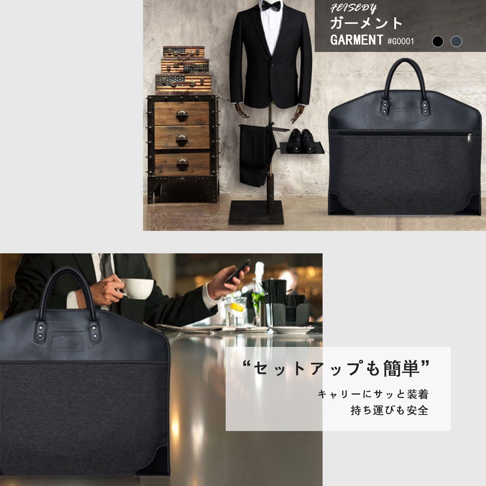 [Karsaer] ガーメントバッグ メンズ ガーメントケース おしゃれ テーラーバッグ スーツバッグ 折りたたみ 小物収納 便利 出張 ビジネス 制服 衣装 収納 冠婚葬祭 礼服G0001