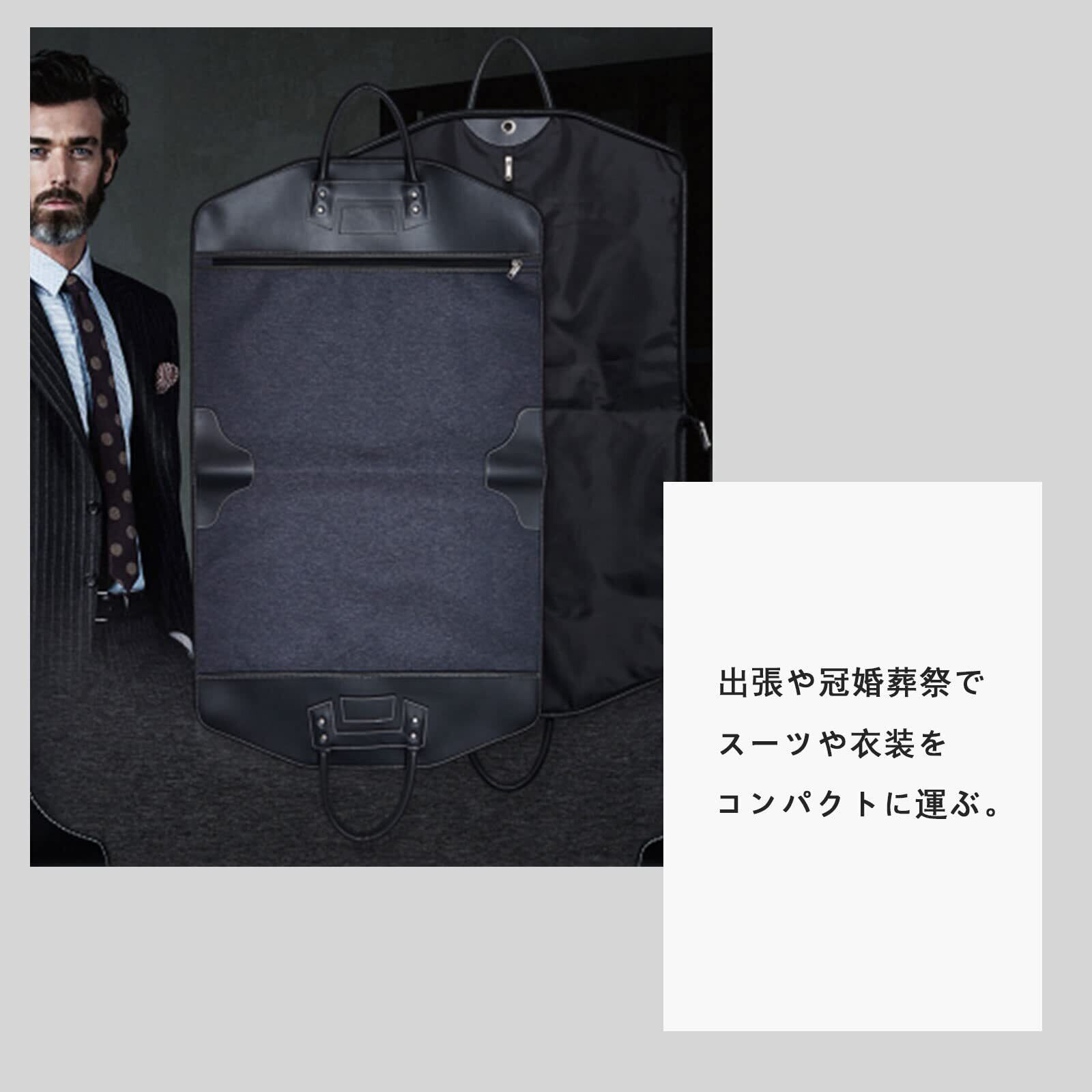 【長時間のスーツの持ち運びをサポート】社会人なら一つは持っておきたいガーメントバッグ。出張先や旅行先に重宝するコンパクトなスーツバッグになっており、スマートに持ち運ぶことが可能です。幅広いサイズのスーツに対応し、飽きの来ないシンプルなデザインで気軽にお使いいただけます。