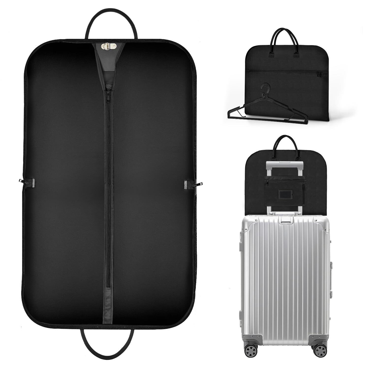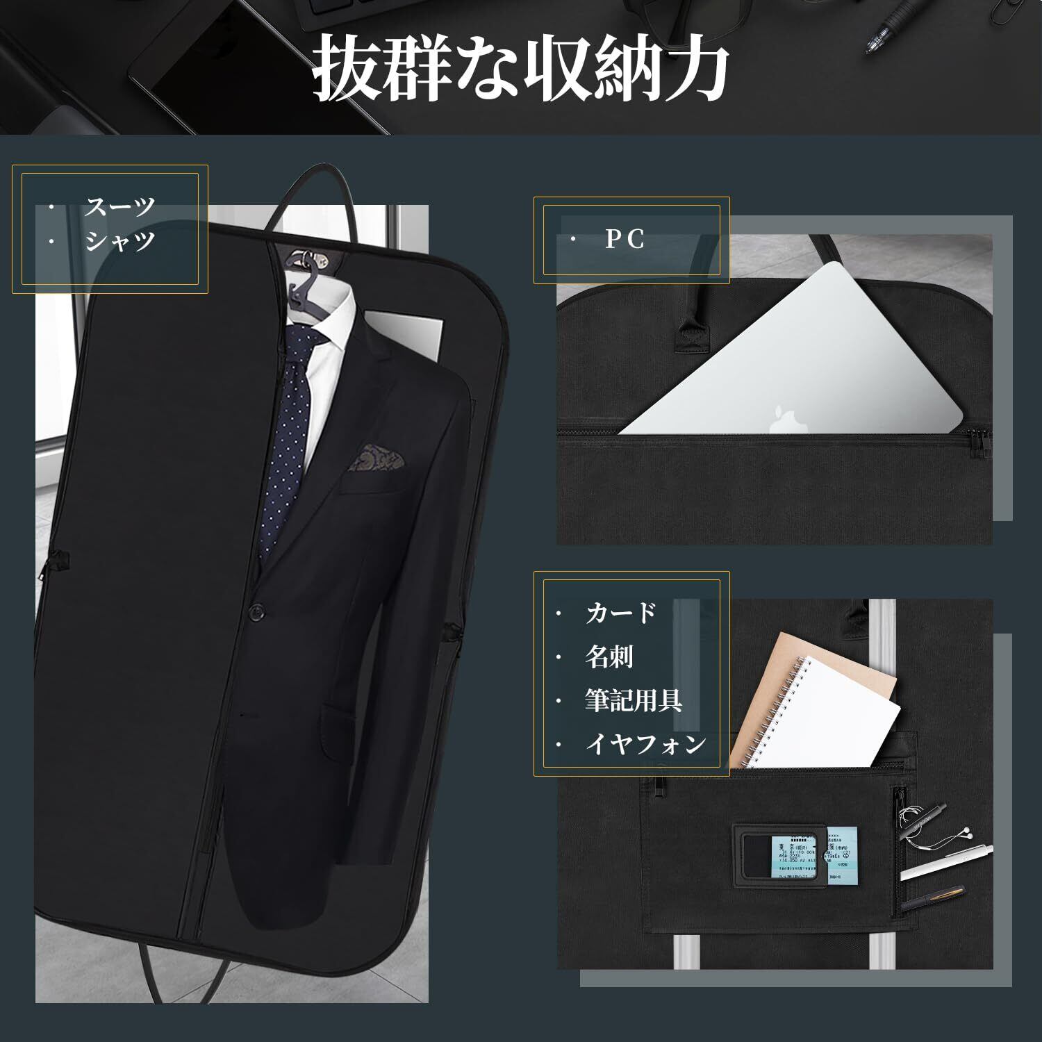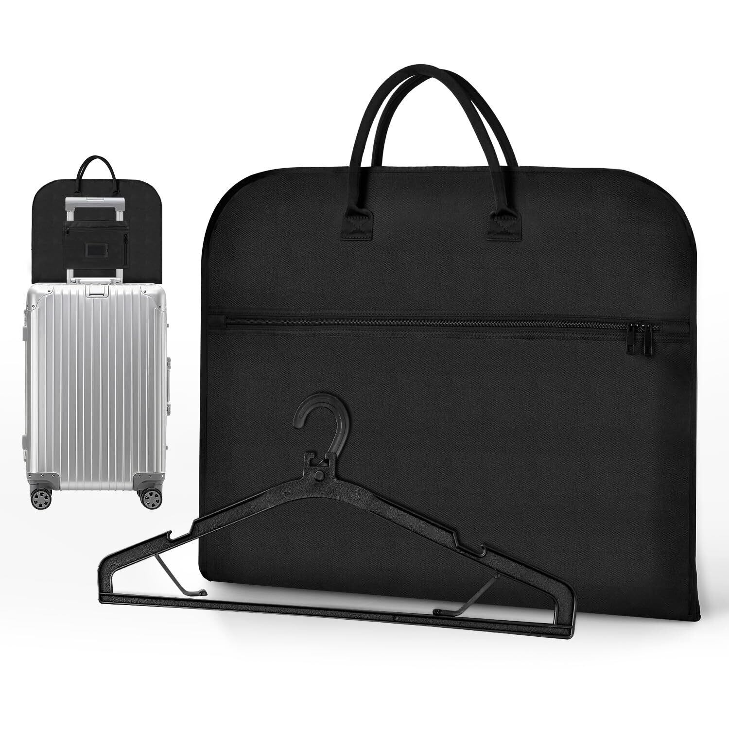 Lesige ガーメントバッグ スーツカバー 型崩れ防止 スーツケース用バッグ キャリーケースに固定でき ポケット/ハンガー付き スーツ/パスポート/靴を収納 出張 冠婚葬祭 旅行 就活 出勤 防水防塵 軽量 大容量 ビジネスマン 男女兼用 コンパクト ブラック