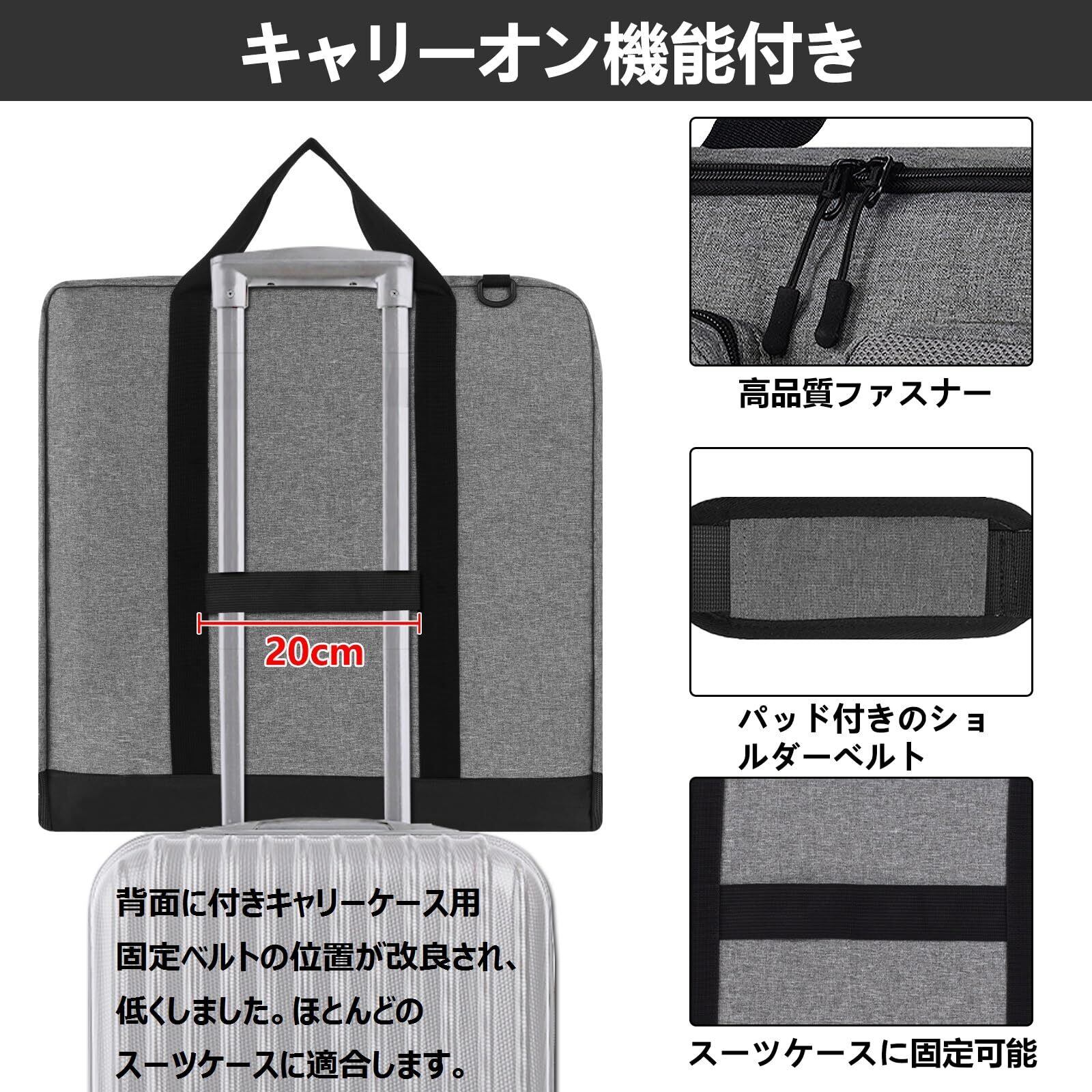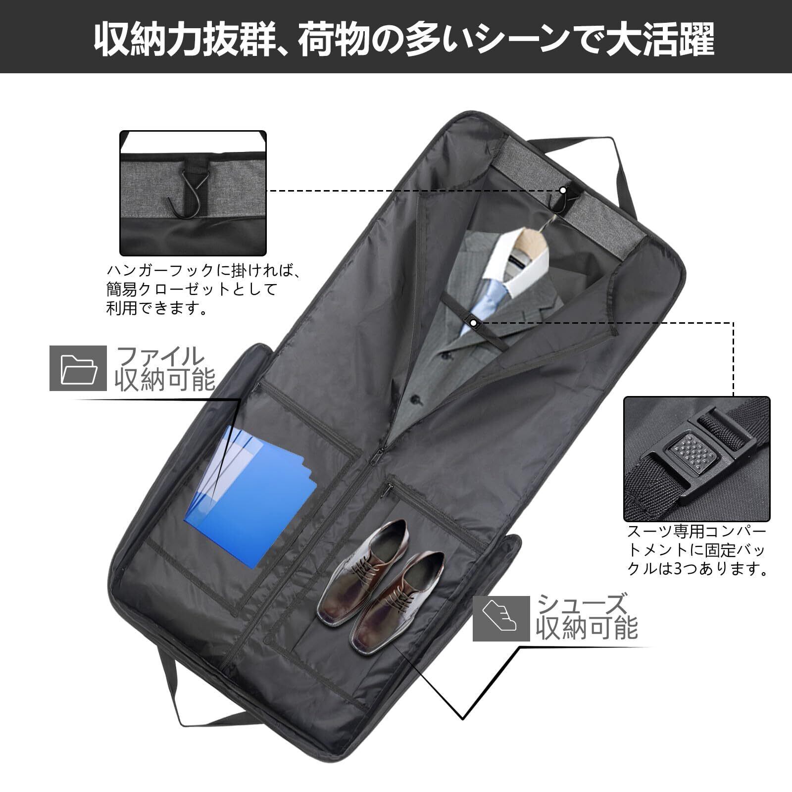 ※改良版です: ①背面に付きキャリーケース用固定ベルトの位置は低くなりました。ほとんどのスーツケースに適合しています。 ②スーツ収納部にはスーツ3着を収納可能になりました。