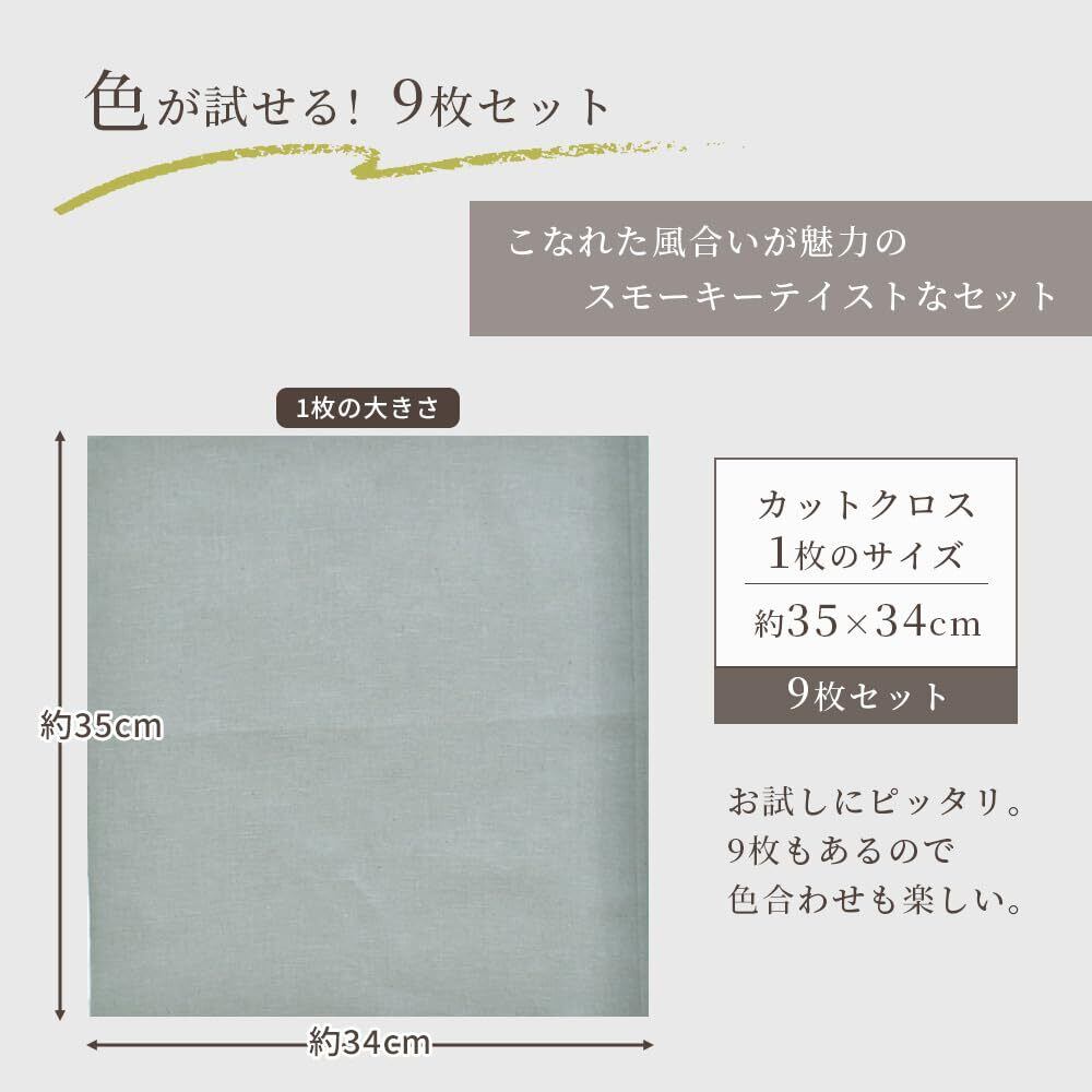 MYmama ハーフリネン 生地 約35×34cm 9色 セット ハギレ 無地 綿 麻 カットクロス 布 (スモーキーset)