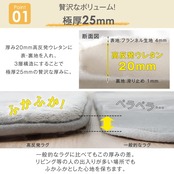 【素材】表地:ポリエステル100% / 目付け:180g/m2 / パイル長さ:約4mm / 裏地:不織布150g/m2(花柄滑り止め付) / 中材:20mm高反発ウレタンフォーム(25D)