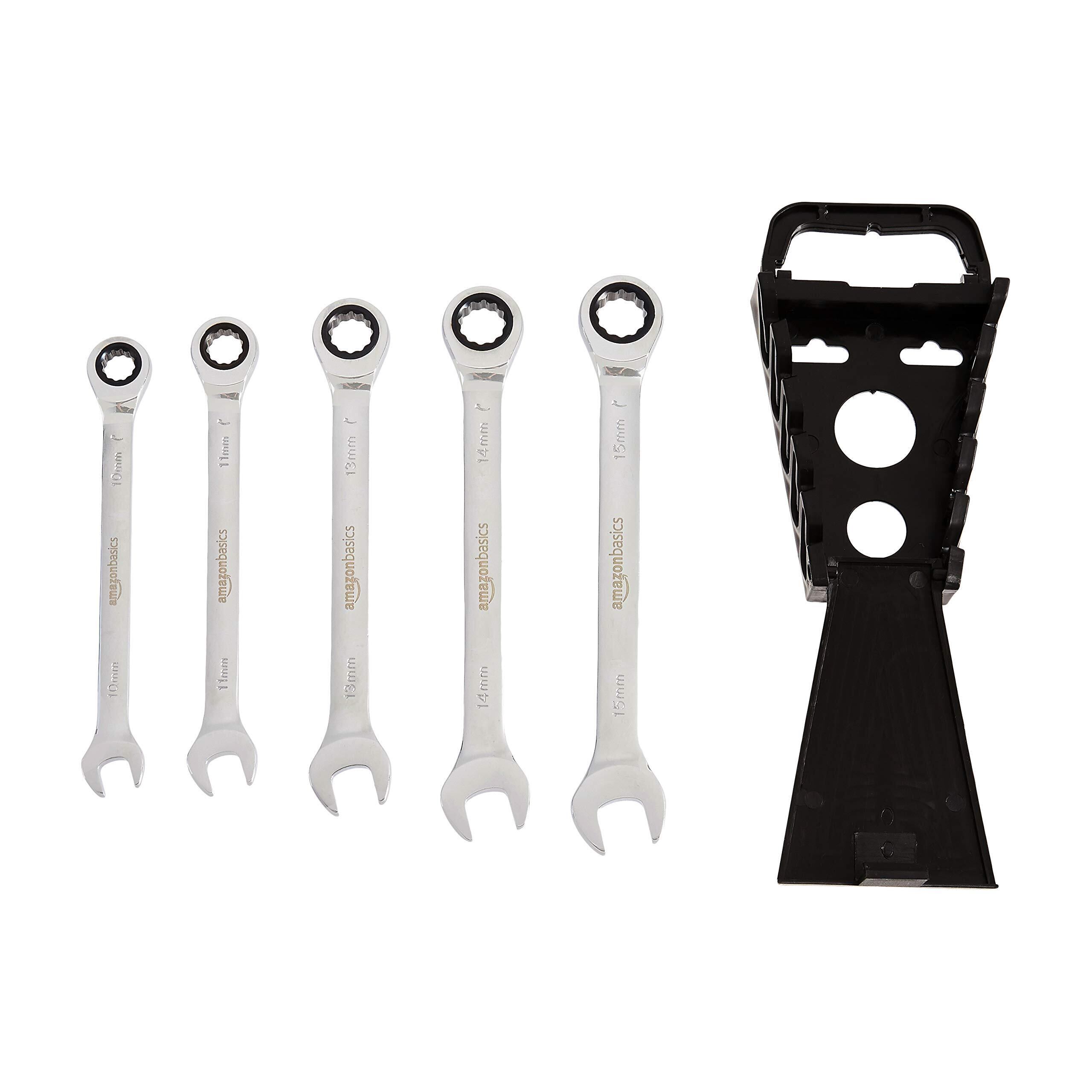 クロム仕上げラチェットレンチセット5ピース・素材 : 耐久性のあるクロムバナジウム (Cr-V) スチール、落とし鍛造・硬化処理済み