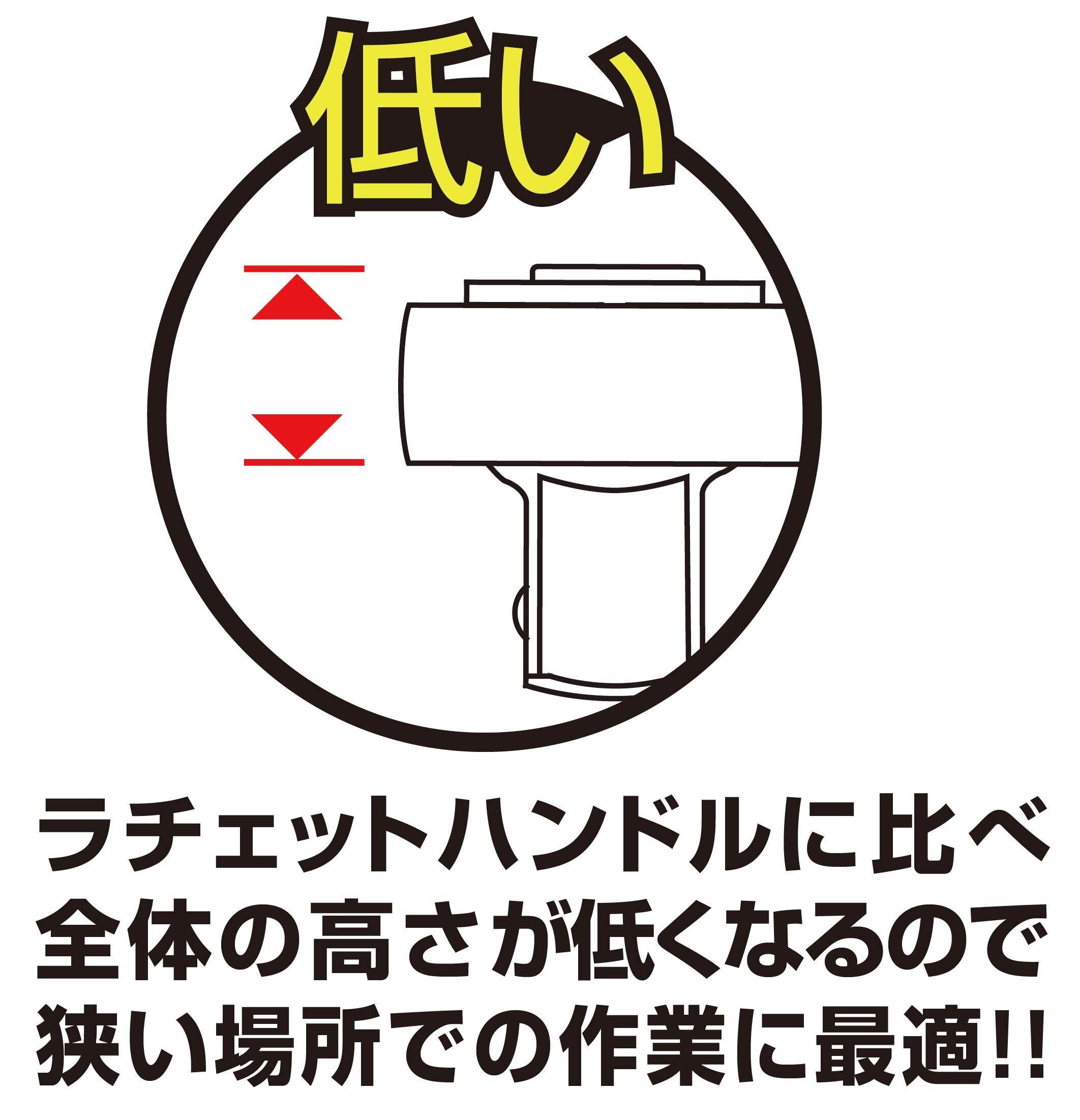 ラチェットハンドルに比べて全体の高さが低くなるので、狭い場所での作業に最適です。