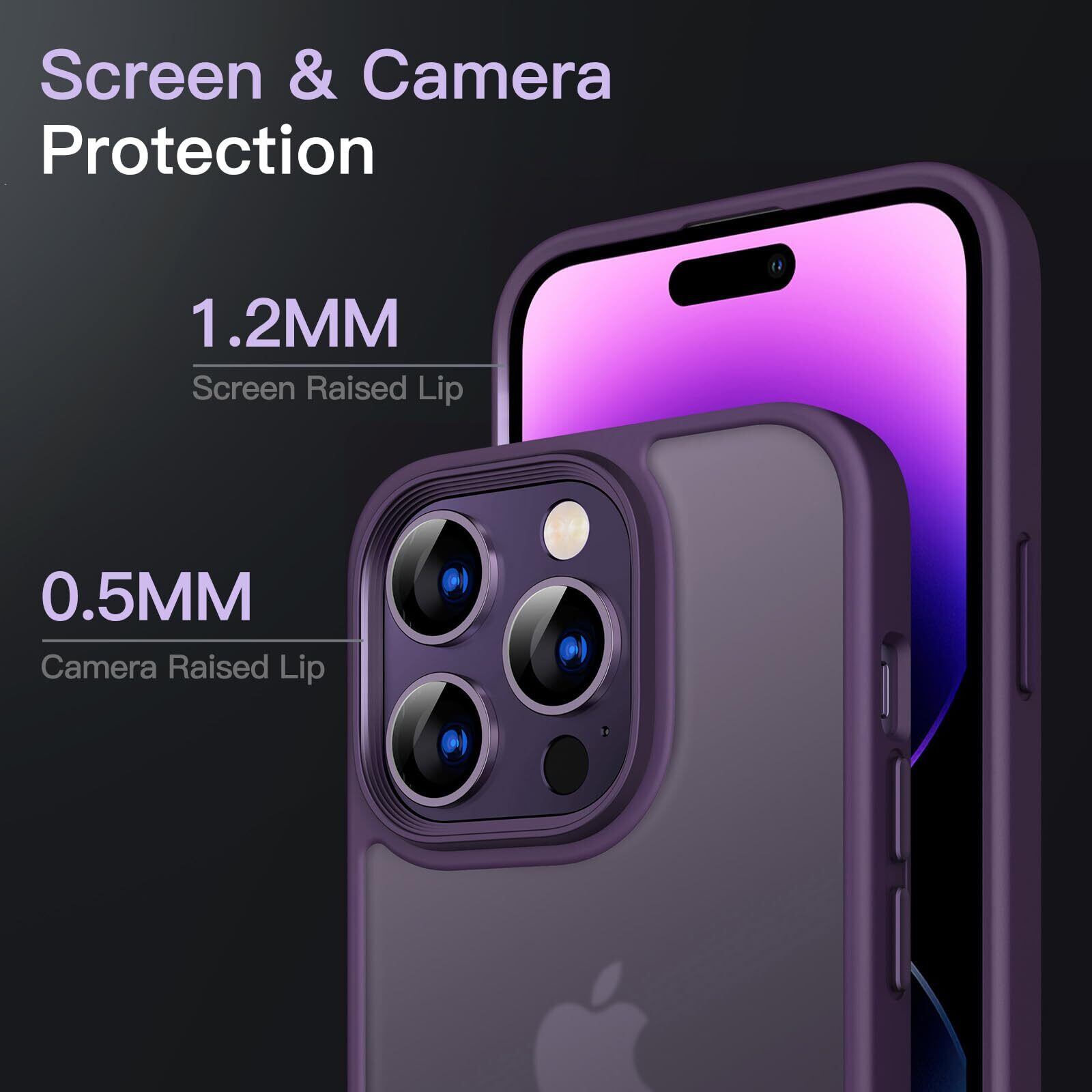 JETech マットケース iPhone 14 Pro 6.1インチ用 耐衝撃性ミリタリーグレードの落下防止 つや消しの半透明の背面電話カバー 指紋防止 (ディープパープル)