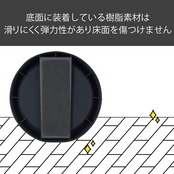 ■ 底面に装着している樹脂素材は、滑りにくく弾力性があり床面を傷つけません。