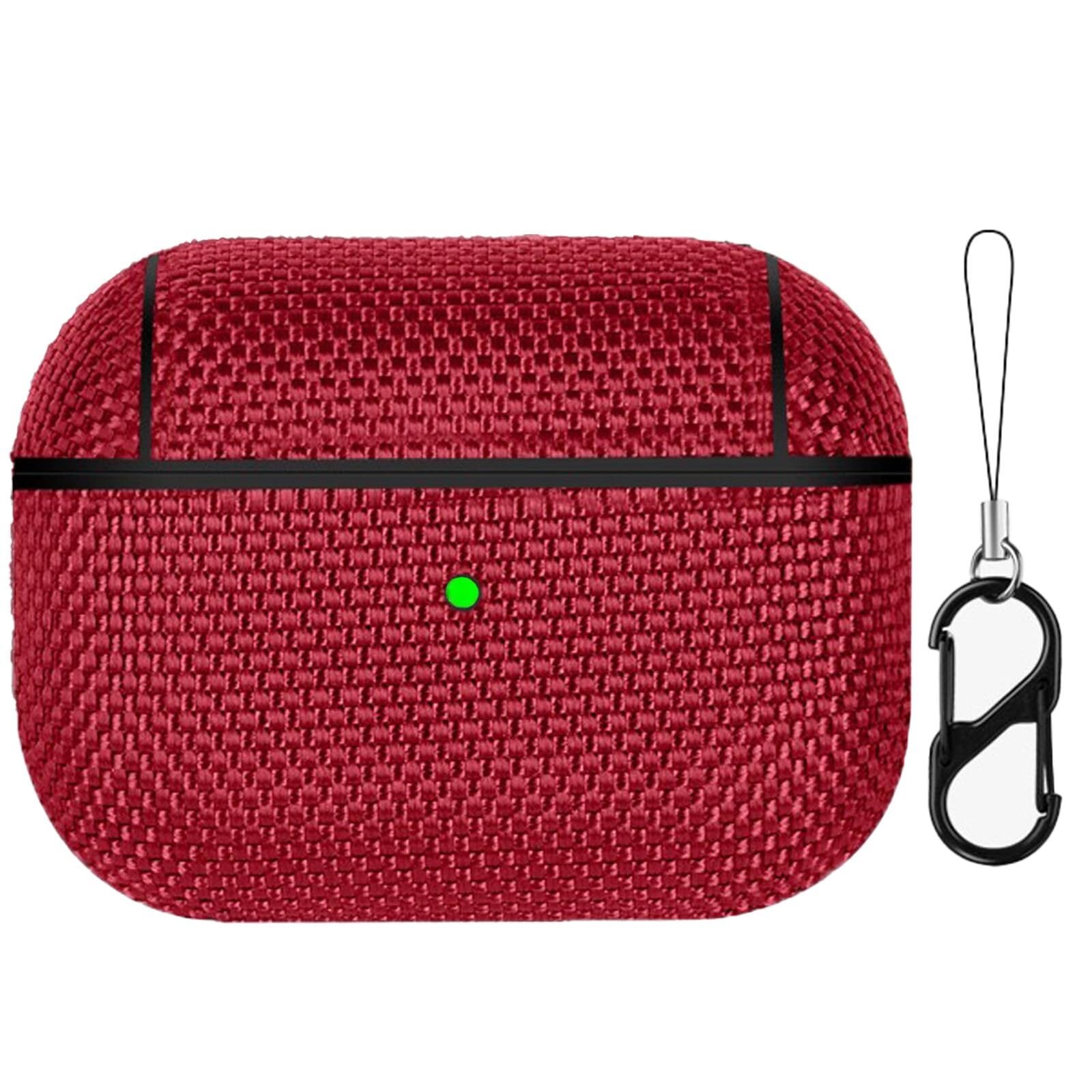 CIOODDW えあほっつぷろ2ケース 対応 airpods pro 2 ナイロンの編み込み素材 airpods pro2 ケース 分離式 LED可視 ワイヤレス充電対応 耐衝撃 全面保護カバー アップルイヤホン 保護ケース カラビナ付き airpods pro 第2世代 ケース(レッド)