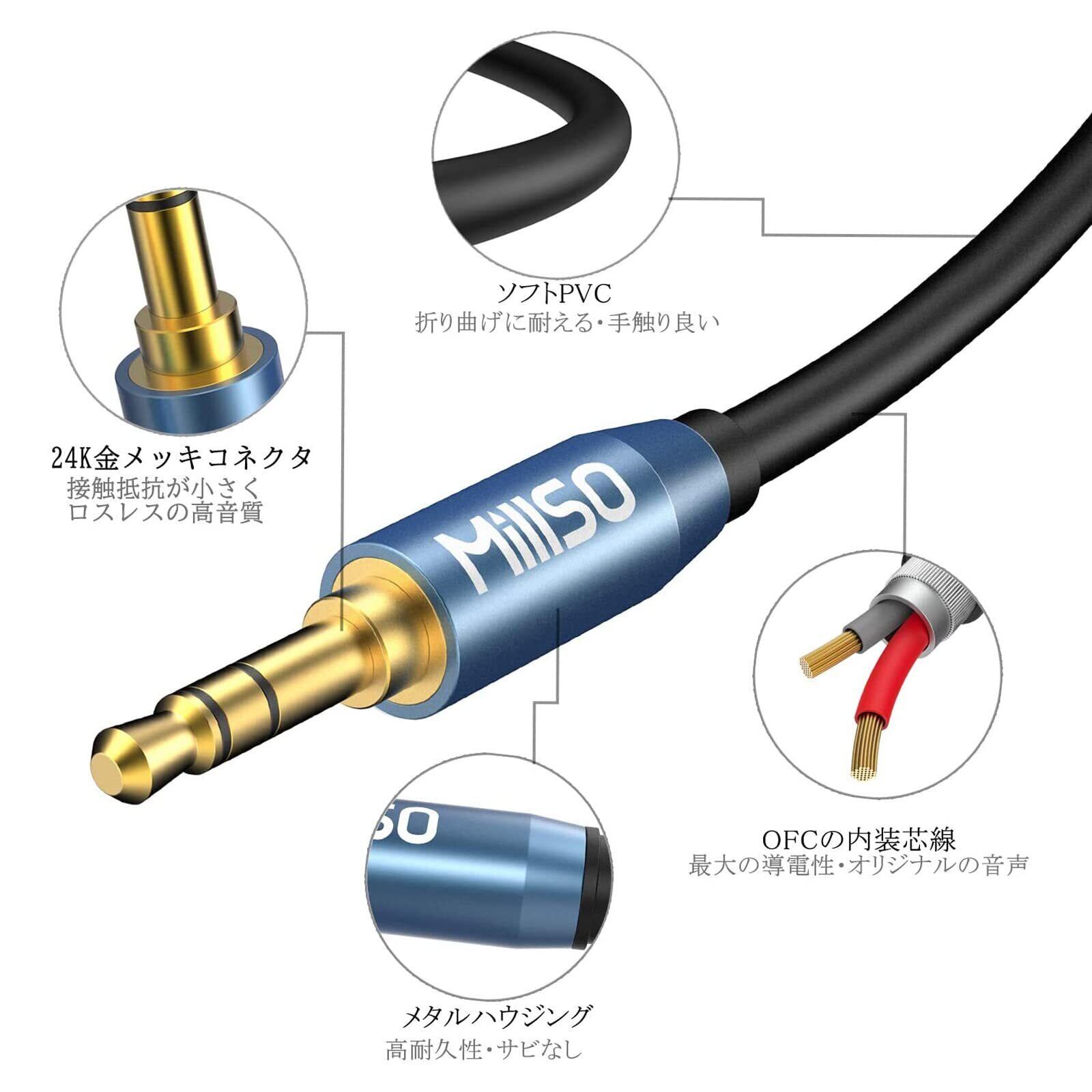 【しっかりサポート】MillSO 3.5mmステレオオーディオ延長ケーブルは、12ヶ月の長期が付きます。製品の品質に問題がある場合は、お気軽にお問い合わせください。迅速に対応いたします。「[email protected]」