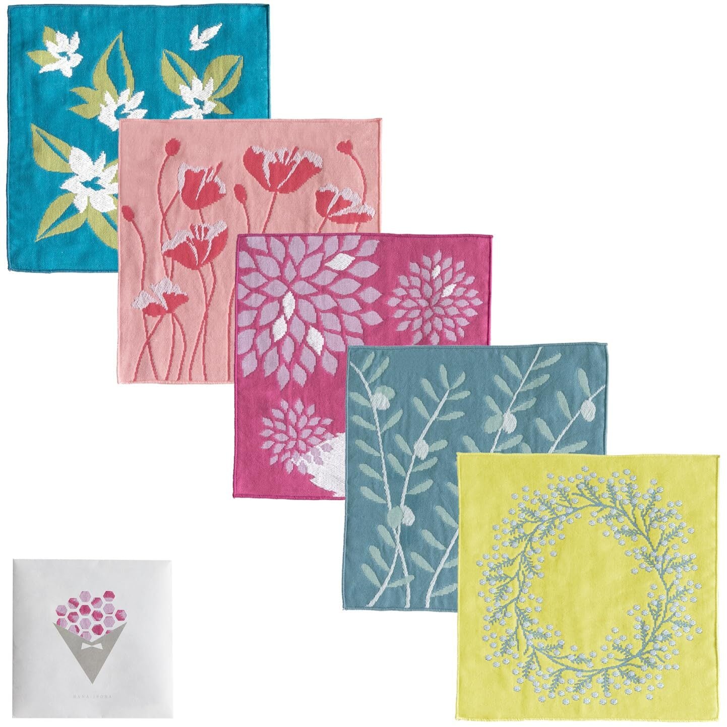 トップファクトリー今治 花いろは フラワー 25cm×25cm 今治タオル ハンカチ ギフト レディース タオルハンカチ 綿100% ガーゼ 退職 お祝い 返礼品 内祝い プチギフト プレゼント (5B:ミモザ&オリーブ&ダリア&ポピー&クチナシ)