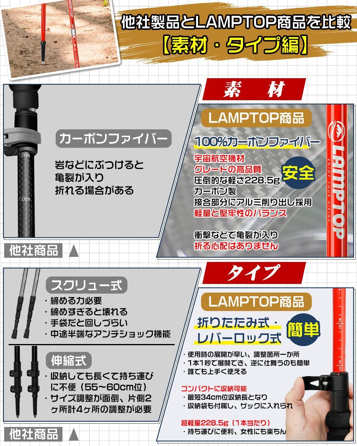 【商標登録済・長期メーカー】LAMPTOPは日本で商標登録されているブランドです。すべての商品は、工場と本社スタッフによる厳密な品質管理の後、の倉庫に送られ、配送はが行います。購入後30日間、理由を問わず返品・返金できます。商品の返送料も無料です。️お気軽に、LAMPTOPをお試しください。 ️【1年 】万が一のトラブルもスタッフが迅速に対応します。 付属の書に記載の連絡先にご連絡お願いします。【内容物/】トレッキングポール2本 トレッキング4個 ウォーキング2個 バスケット2個 スノーバスケット2個 収納ケース1個 日本語説明書兼書/安心1年 説明書に組立動画あり、QRコードをスキャンしてご確認いただけます。