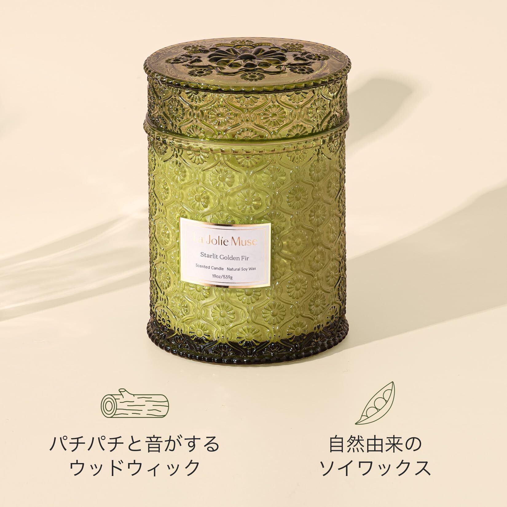LA JOLIE MUSE アロマキャンドル スターリット・ゴールデン・ファー ウッドウィック ソイワックス 大容量 約90時間燃焼 ギフト 539g