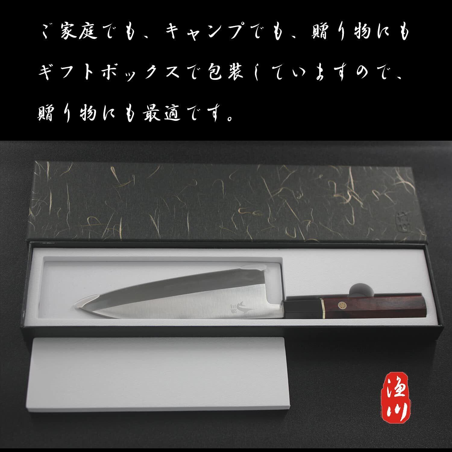 漁川 出刃包丁 【ホンジュラス紅檀柄】 【6Cr16MoV鋼】 【刃渡181】 右利き 和包丁 家庭用 魚介 捌く 家での魚さばきをもっと簡単に