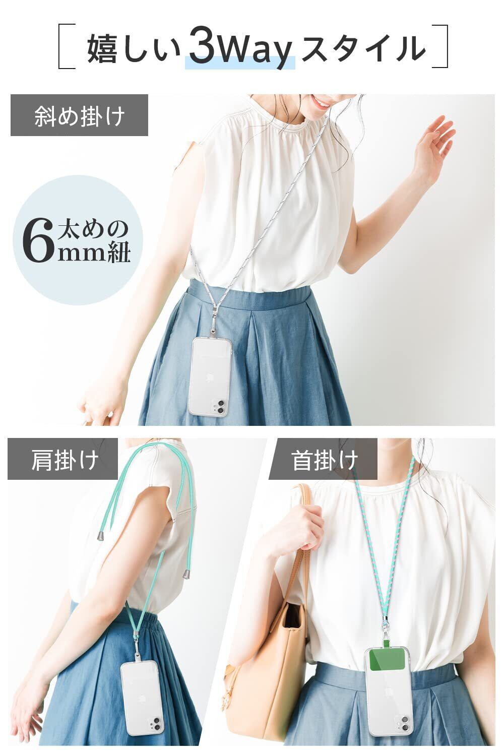 [EX-DASH] 【強化版 & 3WAY使用】 スマホ ストラップ 首掛け/肩掛け/斜め掛け 紛失防止スマホ ホルダー 落下防止 長さ調整可能 スマホストラップ ショルダー iPhone落下防止 ワイヤレス充電対応 携帯ストラップ