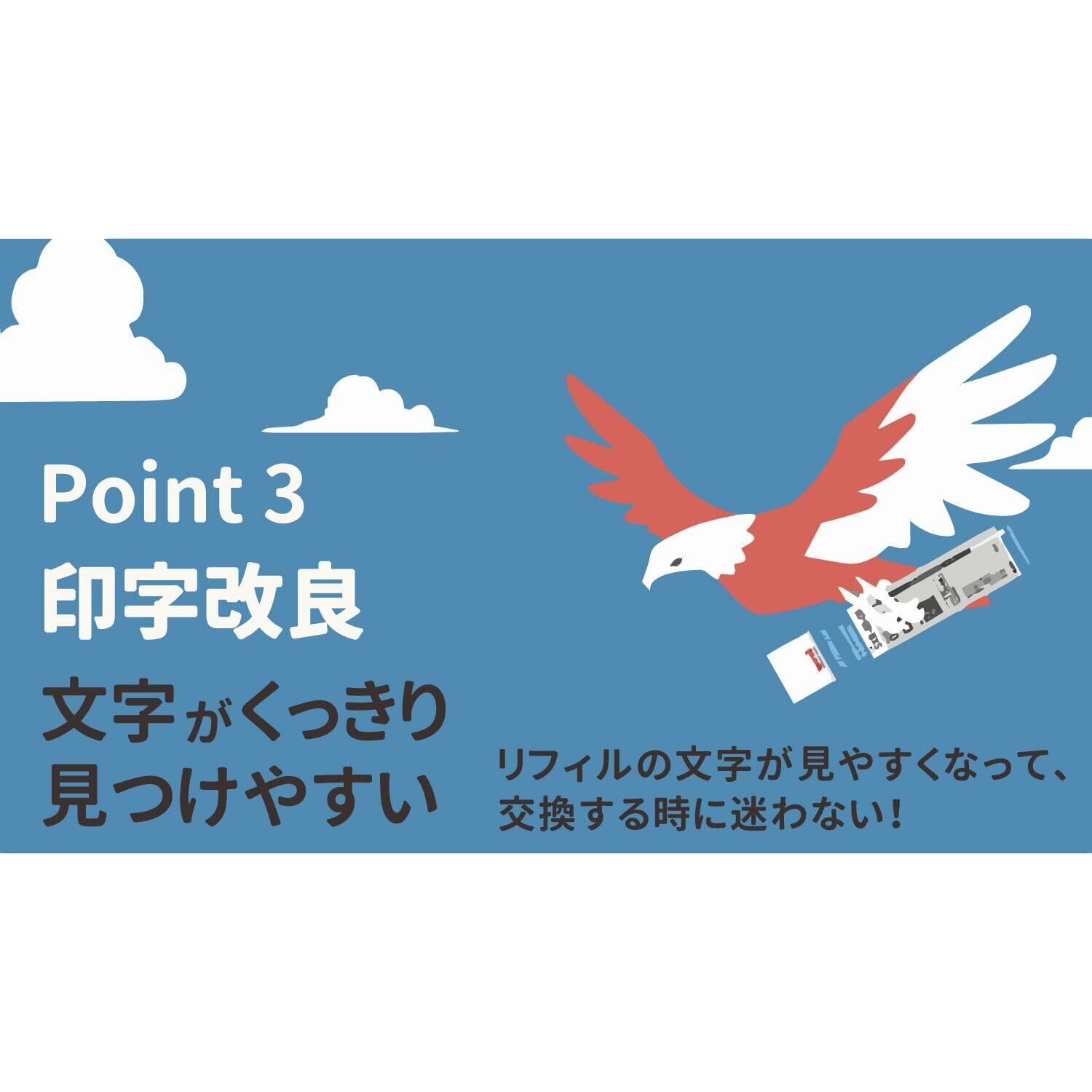 リフィルを購入する際、使用済みのリフィルと見比べながら探すユーザーが多いことから、リフィル本体の印字の視認性を改良いたしました。