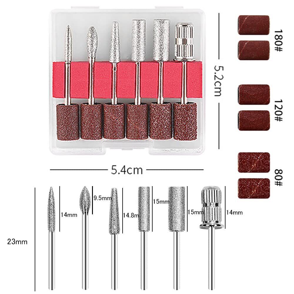 【商品仕様】シャンク: 2.35mm、パッケージ内容: 6×サンディングバンド5×研磨ビット 6×ネイルドリルビット。