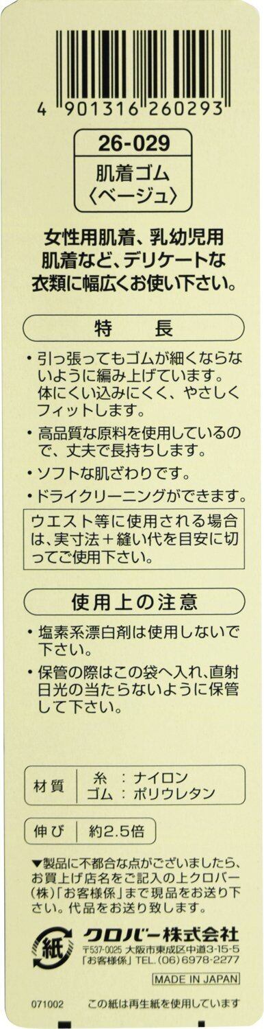クロバー(Clover) Clover 肌着ゴム 7mm幅 2m巻 ベージュ 26-029