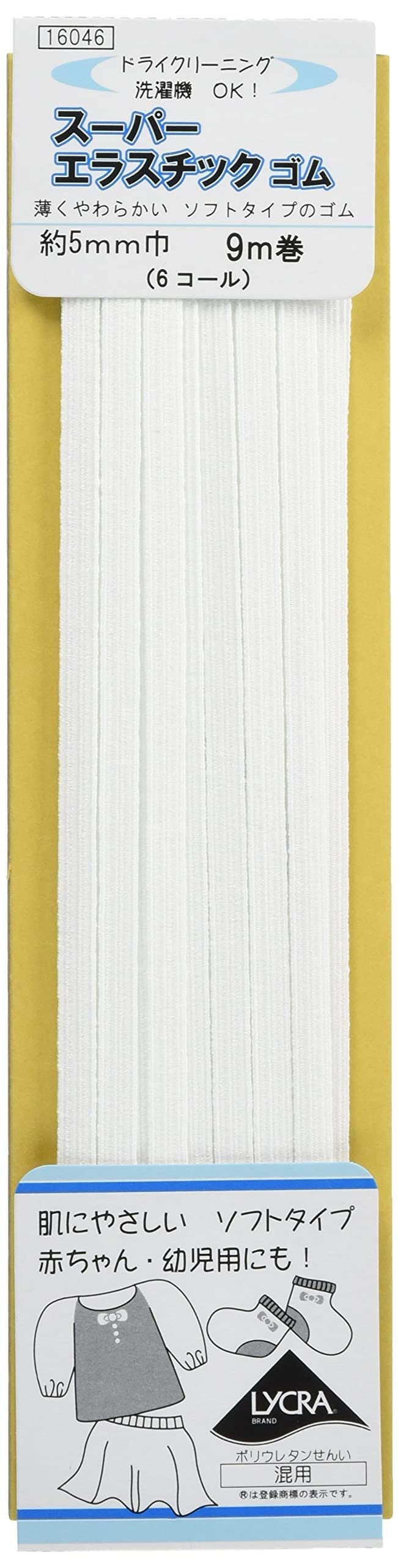 NASKA スーパーエラスチックゴム 6コール 約5mm巾 9m巻 白 16046