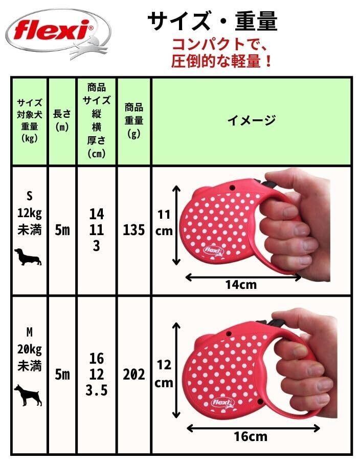 Flexi フレキシ 2年 伸縮リード リード 限定版 【Limited Edition】 水玉模様 (M(20kg未満) 5m, Pink(ピンク))
