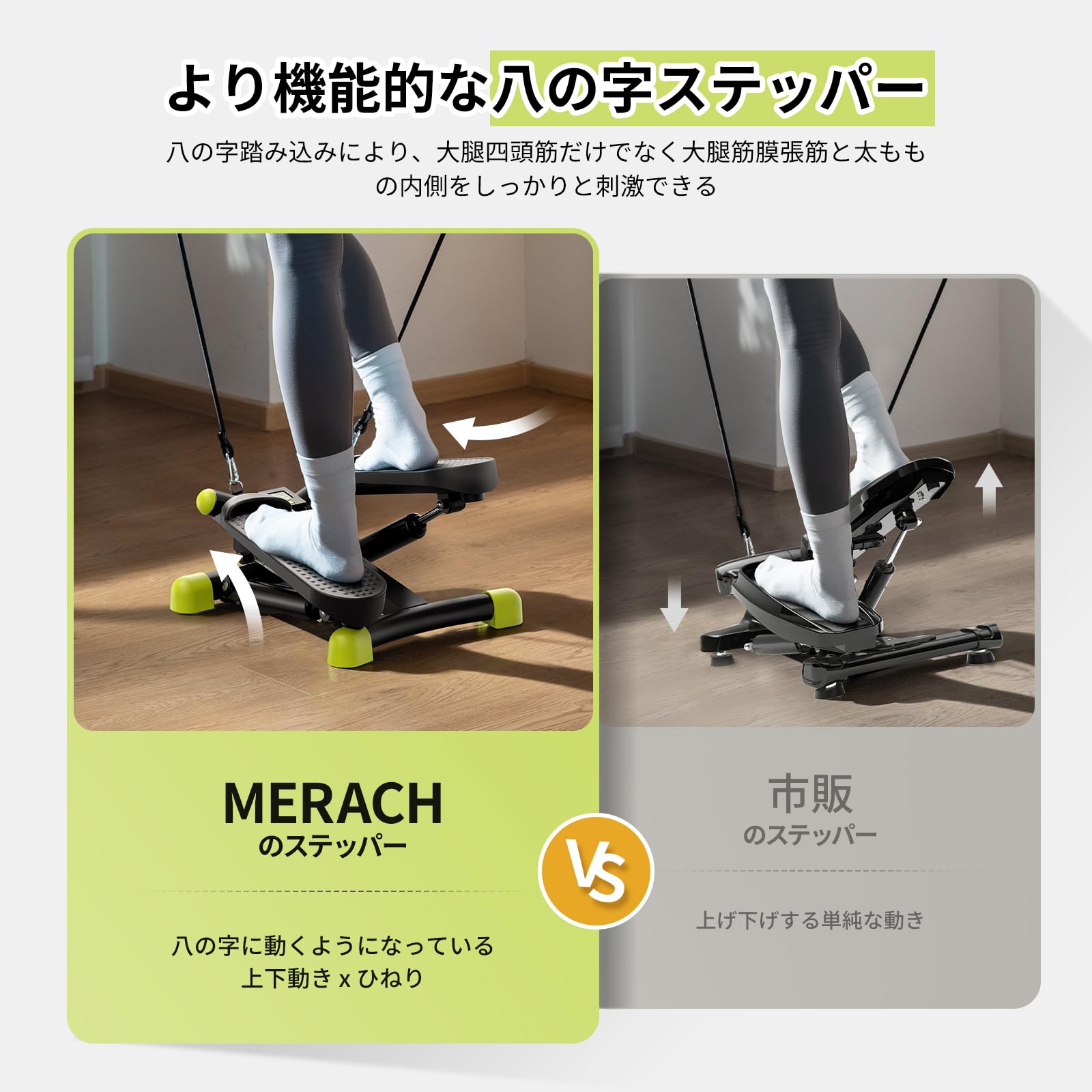ステッパー MERACH(メリック)健康ステッパー 上下足踏みと左右ひねり エクササイズバンド付き LCDディスプレ 耐荷重110kg 全身トレーニング 足踏みステッパー 静音設計 コンパクト ミニステッパー 足踏み健康器具 ダイエット器具 自宅トレ