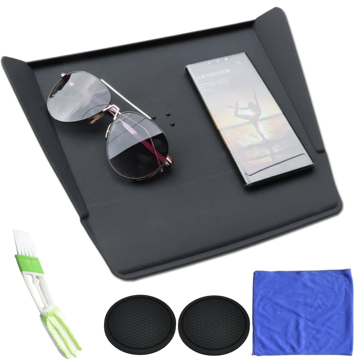 【スマホ・小物をおいても滑らない設計】スマホやサングラス、キーケースなどの小物を、『気軽に、滑る心配なく』置くことができる便利なダッシュボードマットとなっております。