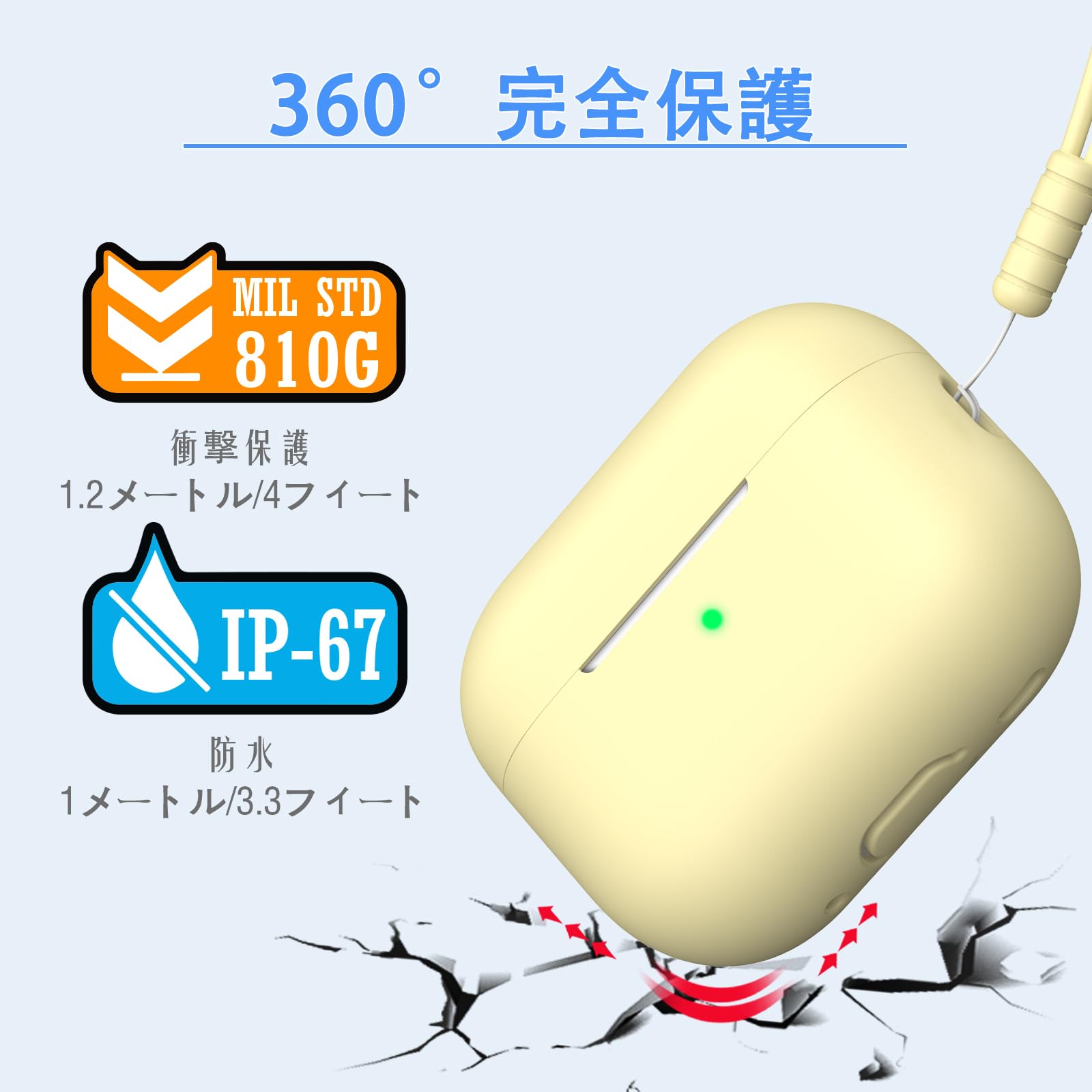 AirPods Pro 第2世代ケースカバー、ミリタリーグレードの落下防止ソフトシリコン製衝撃吸収AirPods Proケーススキンタッチ、キーチェーンとクリーニングキット付き、フロントLED表示、イエロー