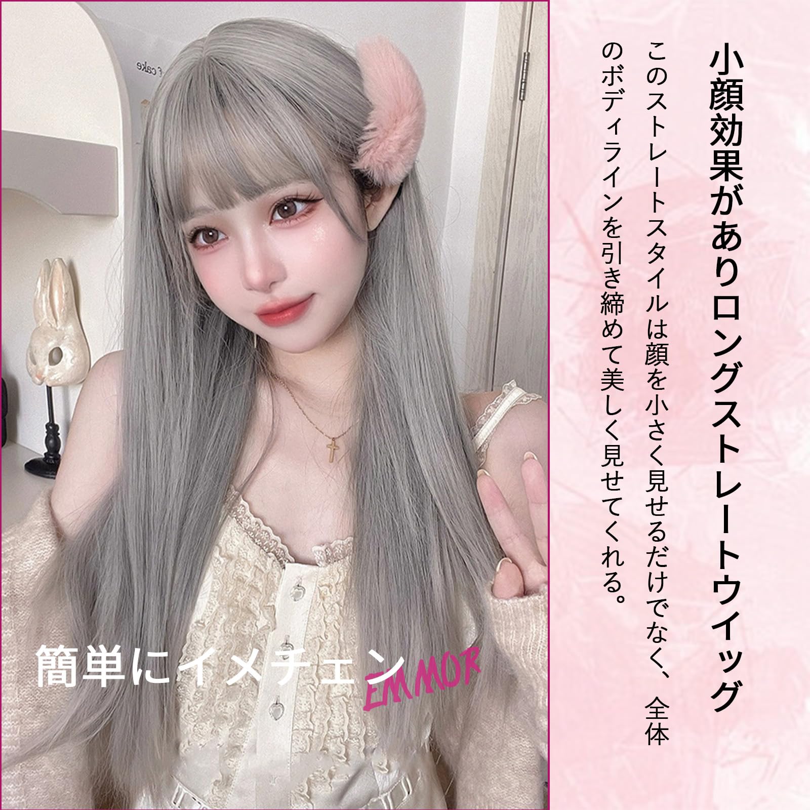 EMMOR ウィッグ ロング ストレート グレーウイッグ 女装 フルウィッグ レイヤー ロリータ かつら 人気 小顔 自然 耐熱 原宿系 コスプレ wig (シルバーグレー)