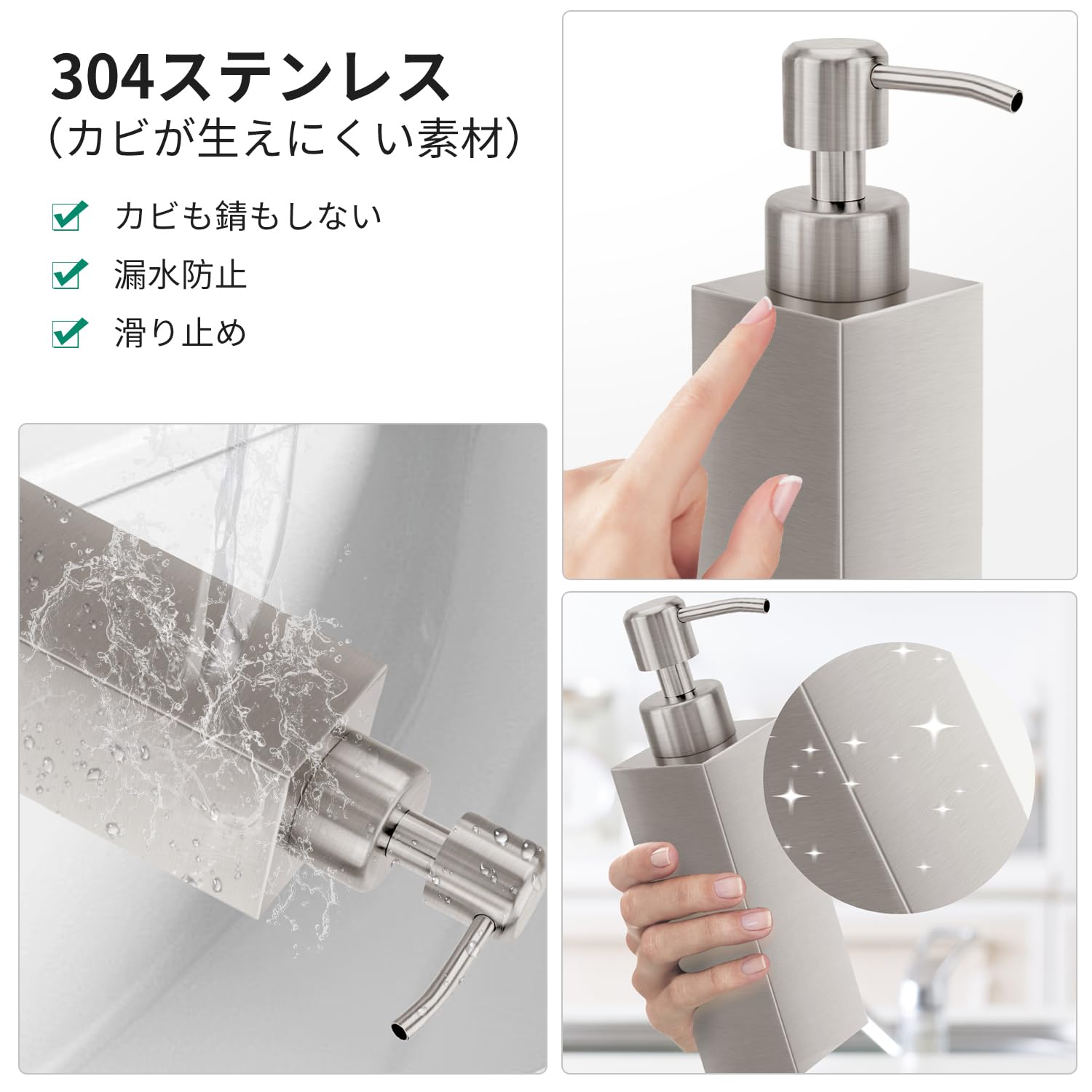 GLUBEE ハンドソープ ボトル 304ステンレス キッチン洗剤 ディスペンサー 250ML 洗剤ボトル 軽量 218g シャンプー 食器洗剤入れ 詰め替え 容器 キッチン バスルーム ホテル 洗面所などに適用 かっこいい スリム おしゃれ (2023)