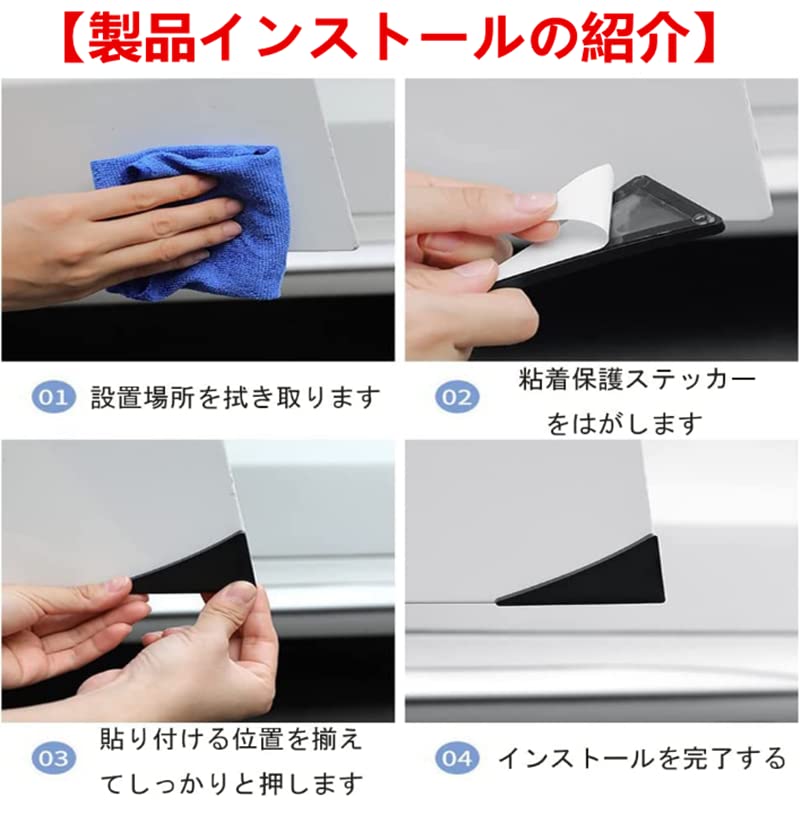 【取り付けが簡単】:車のフロント・リアドアエッジコーナーに直接取り付け、改造不要、脱落しにくい。