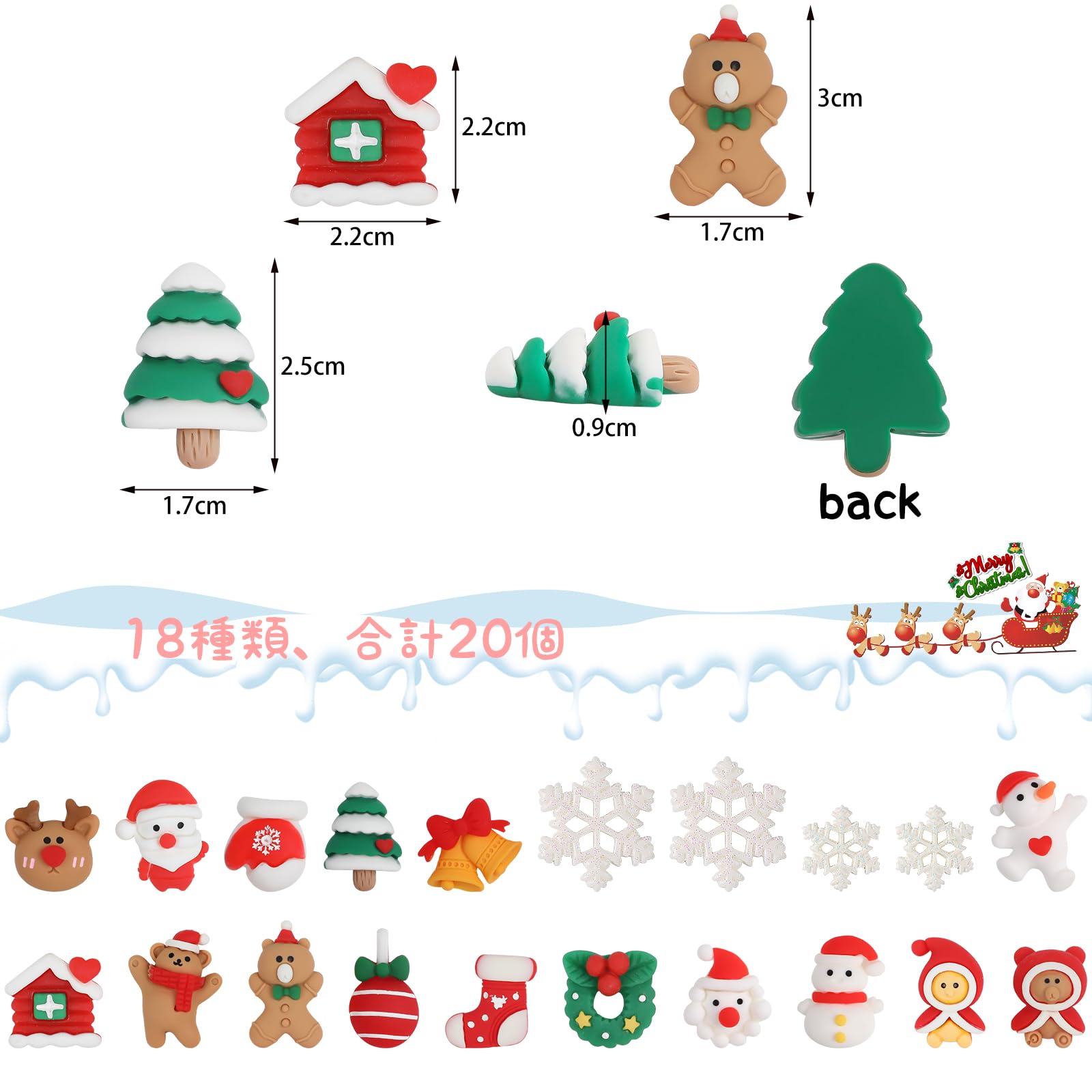 FINGOOO クリスマス デコパーツ 20個・18種 アクリルカボション 雑貨 景品 ミニ 可愛い 飾り 手作り DIY 素材 フェルト ハンドメイド (クリスマス)
