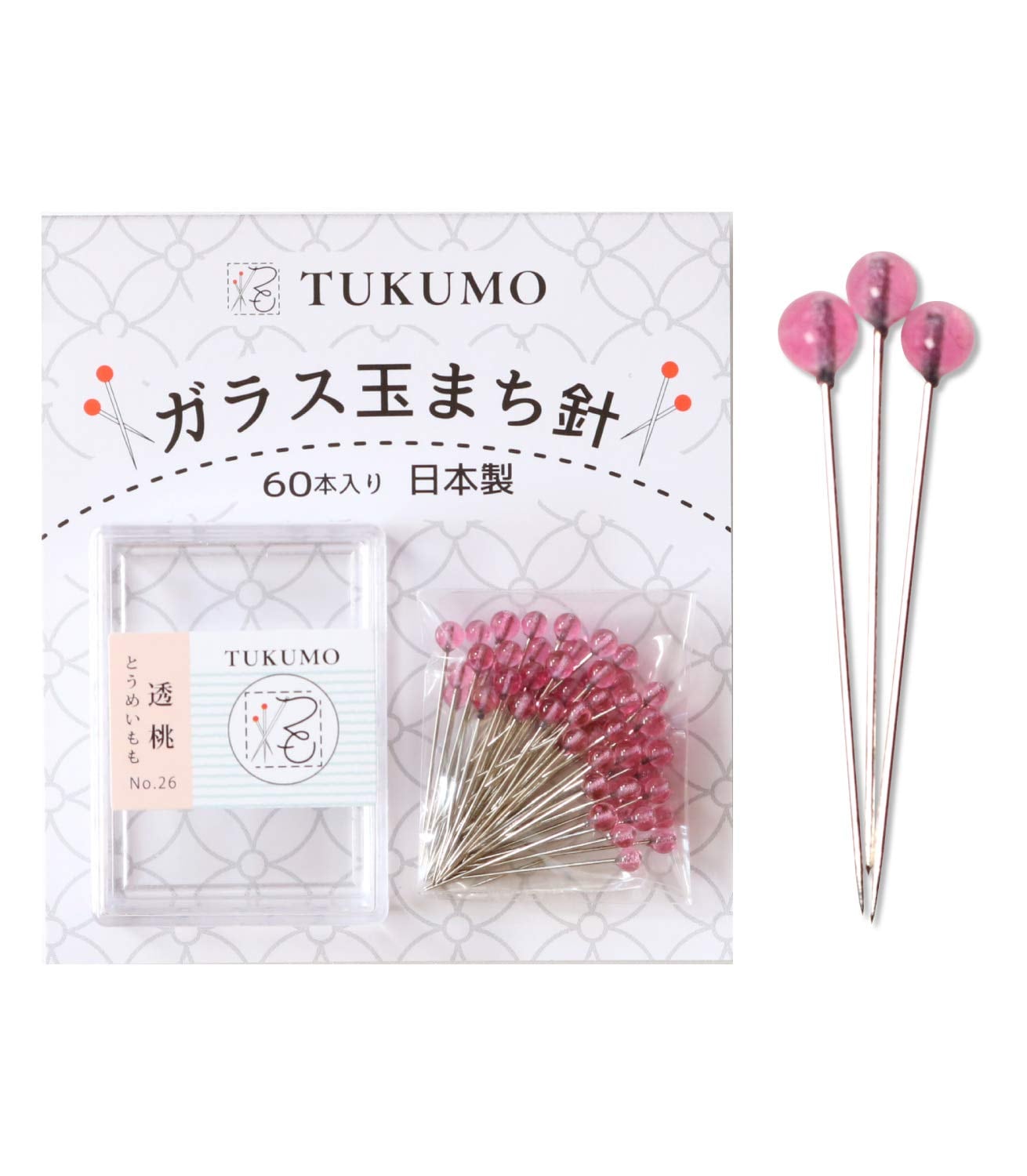 TUKUMO ガラス玉まち針 半透明 待針 待ち針 ストリングアート アップリケ パッチワーク 耐熱 かわいい カラー多数 (桃)