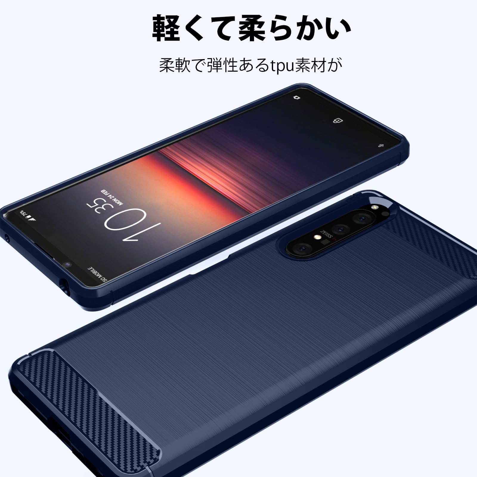 【在庫処分】Xperia 10 II 用ケース 耐衝撃 TPU 薄型 軽量 ソフト エクスペリア10 II SO-41A SOV43 用カバー カーボン風 デザイン ワイヤレス充電 角保護強化 柔らかい 耐久 指紋防止 黄変防止 滑り止め 人気 保護カバー ダークブルー JP4-18 | わくわくSHOP