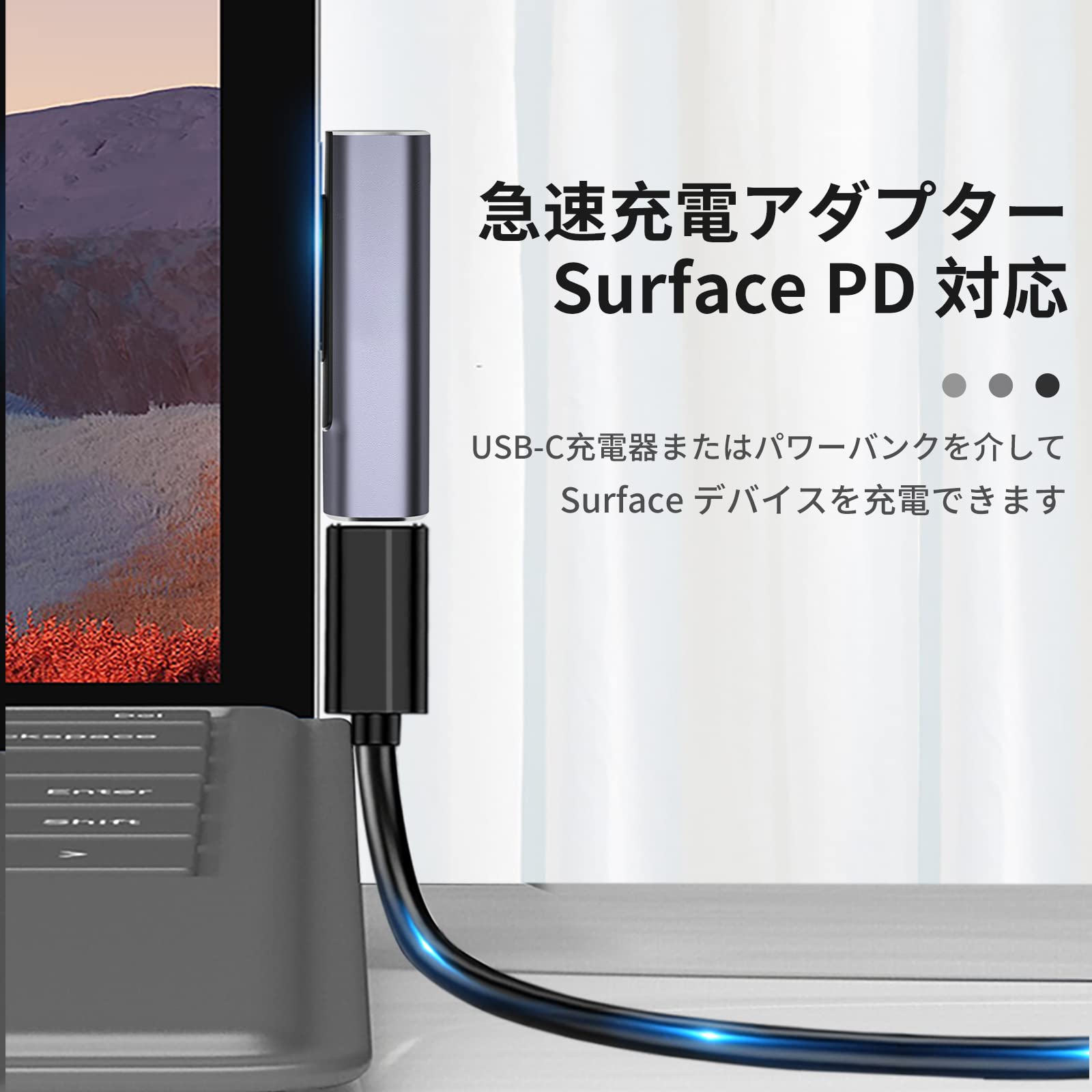 Sisyphy USB C to Surface Pro 急速充電アダプタ「ダークグレー」、15V/3A 45W USB Type C PD充電器必要 両端Type-cケーブル必要、マイクロソフト Surface Pro 10/7/6/5/4/3/X Surface Go1/2/3 Surface Laptop 1/2/3/6 Book タブレット対応