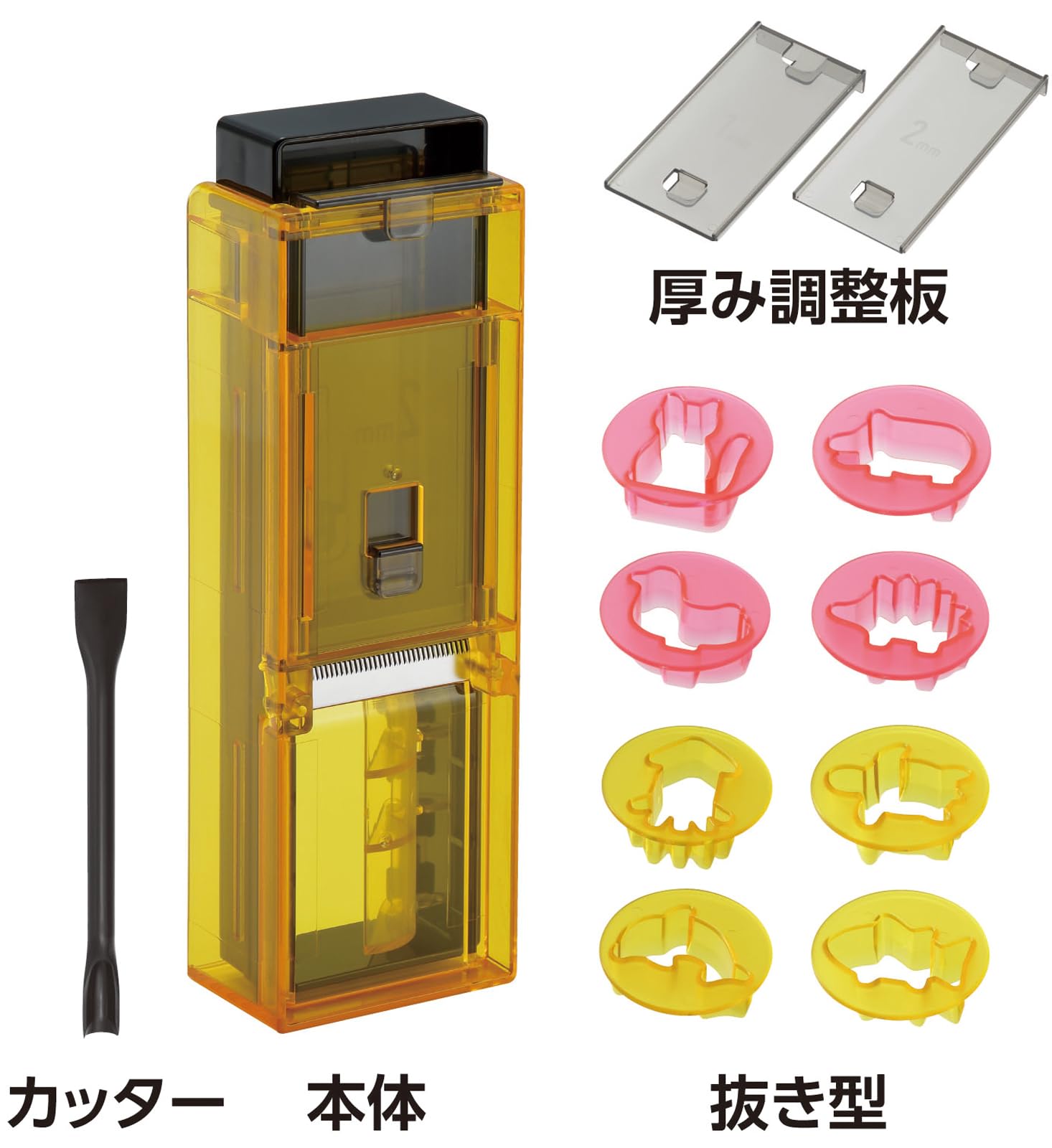 セット内容:ホルダー、スライサー、厚み調節板(1mm・2mm)、カッター、抜き型