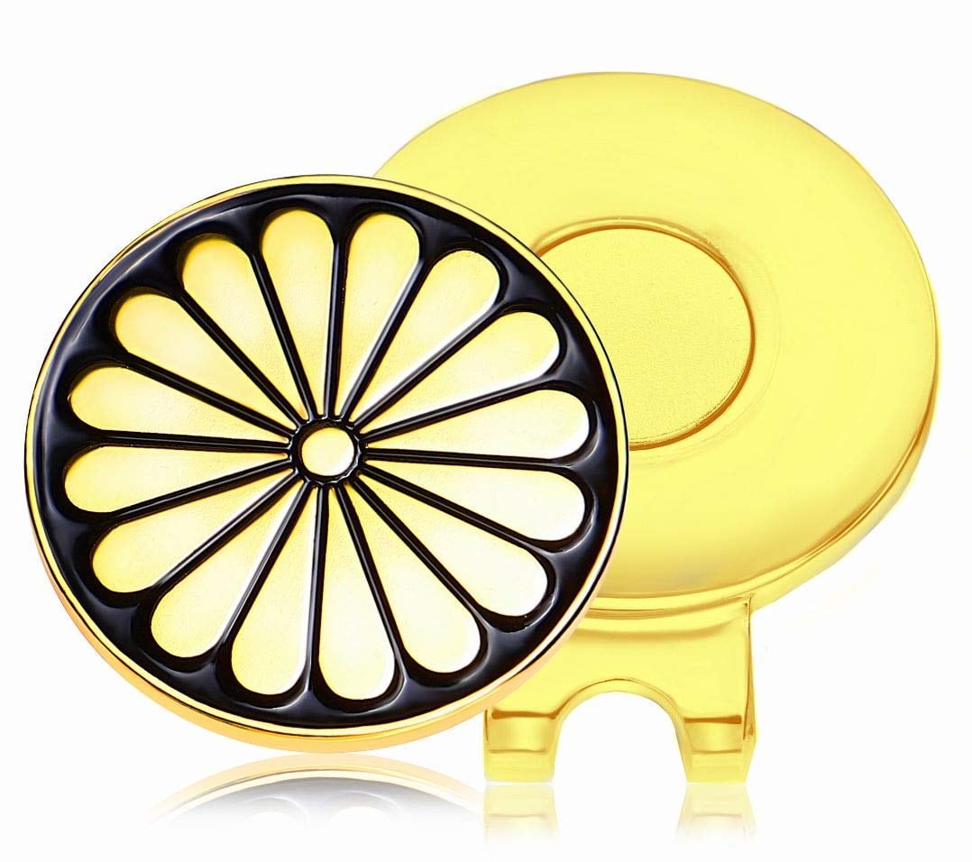 ゴルフマーカー ハットクリップ付き マグネット 菊紋 十六八重表菊 合金製 ゴルフコンペ 景品 プレゼント E0011