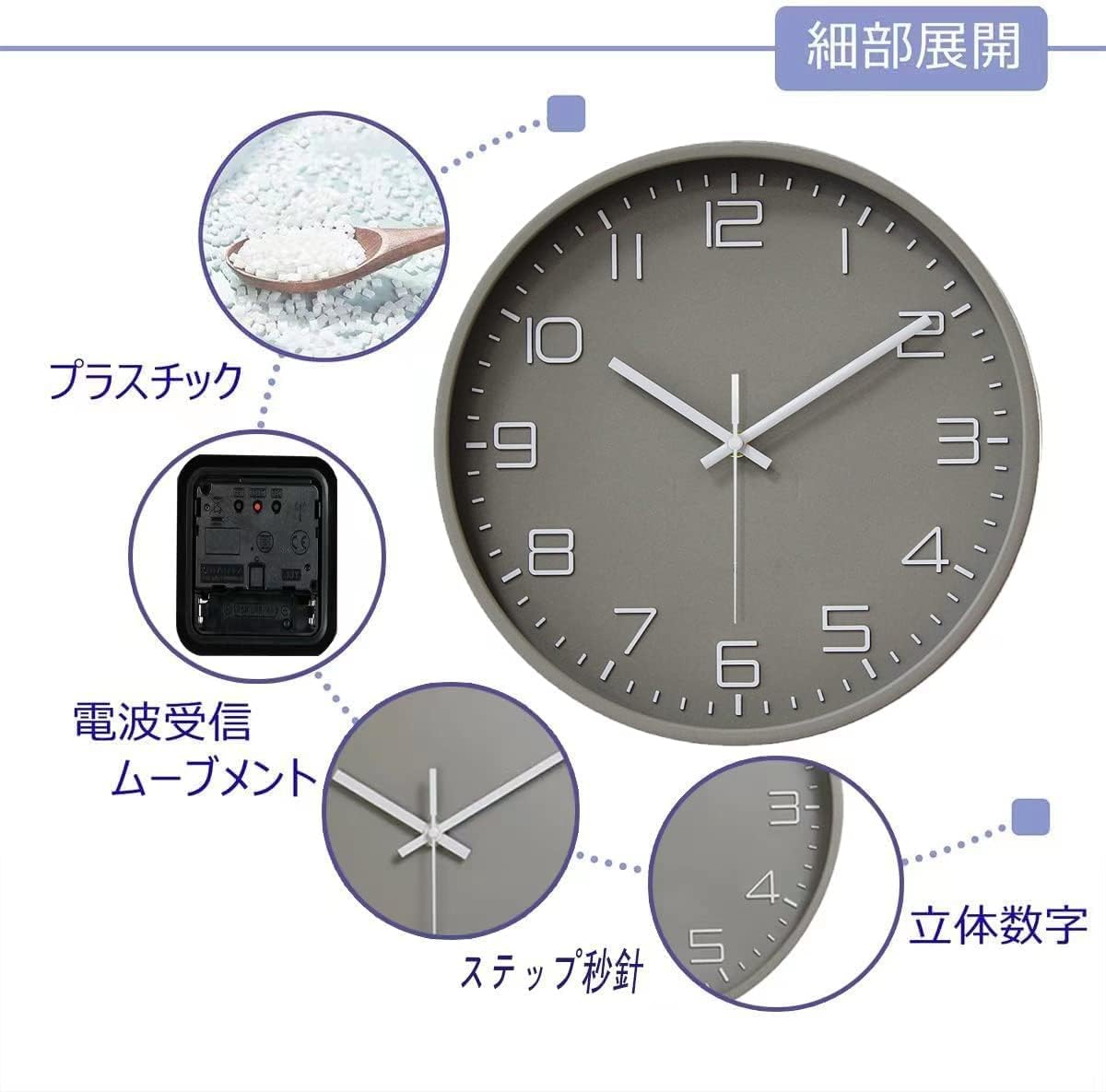 Nbdeal 掛け時計 電波時計 北欧 立体文字 おしゃれ 壁掛け時 直径30cm wall clock (灰色) NEW-4879