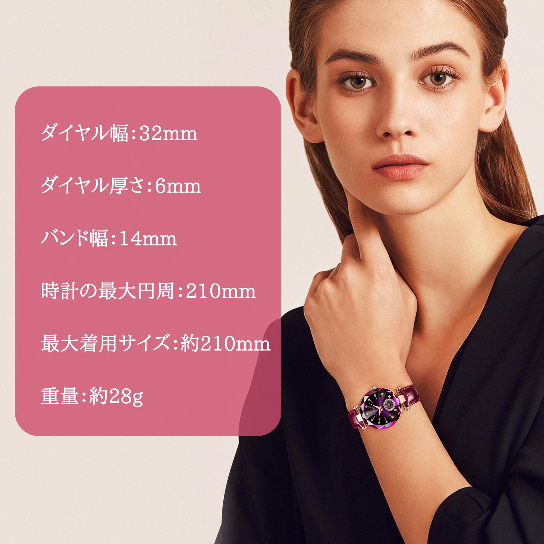 「軽量で小さいサイズ 超薄型時計」:32 mm文字盤幅と6 mm極薄文字盤厚さ、14 mmベルト幅があり、軽くて小さい女性の時計です。女性の手首の大きさによりフィットします。ベルトには着用快適度の高いレザーベルトを採用して、通気性が強くて、装着の快適度が高い。
