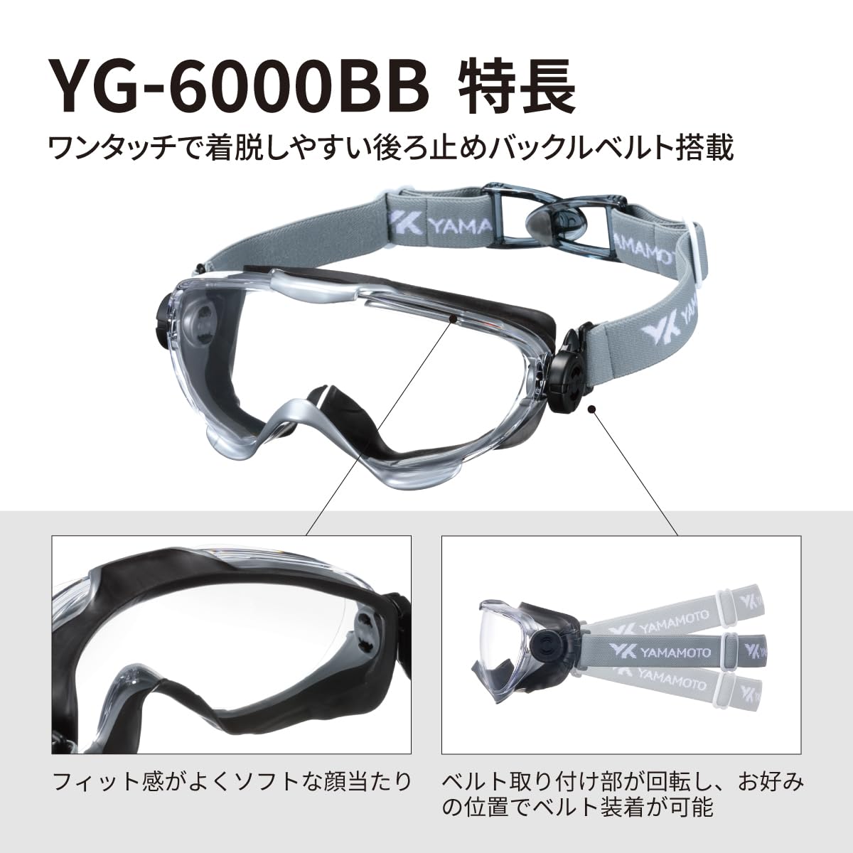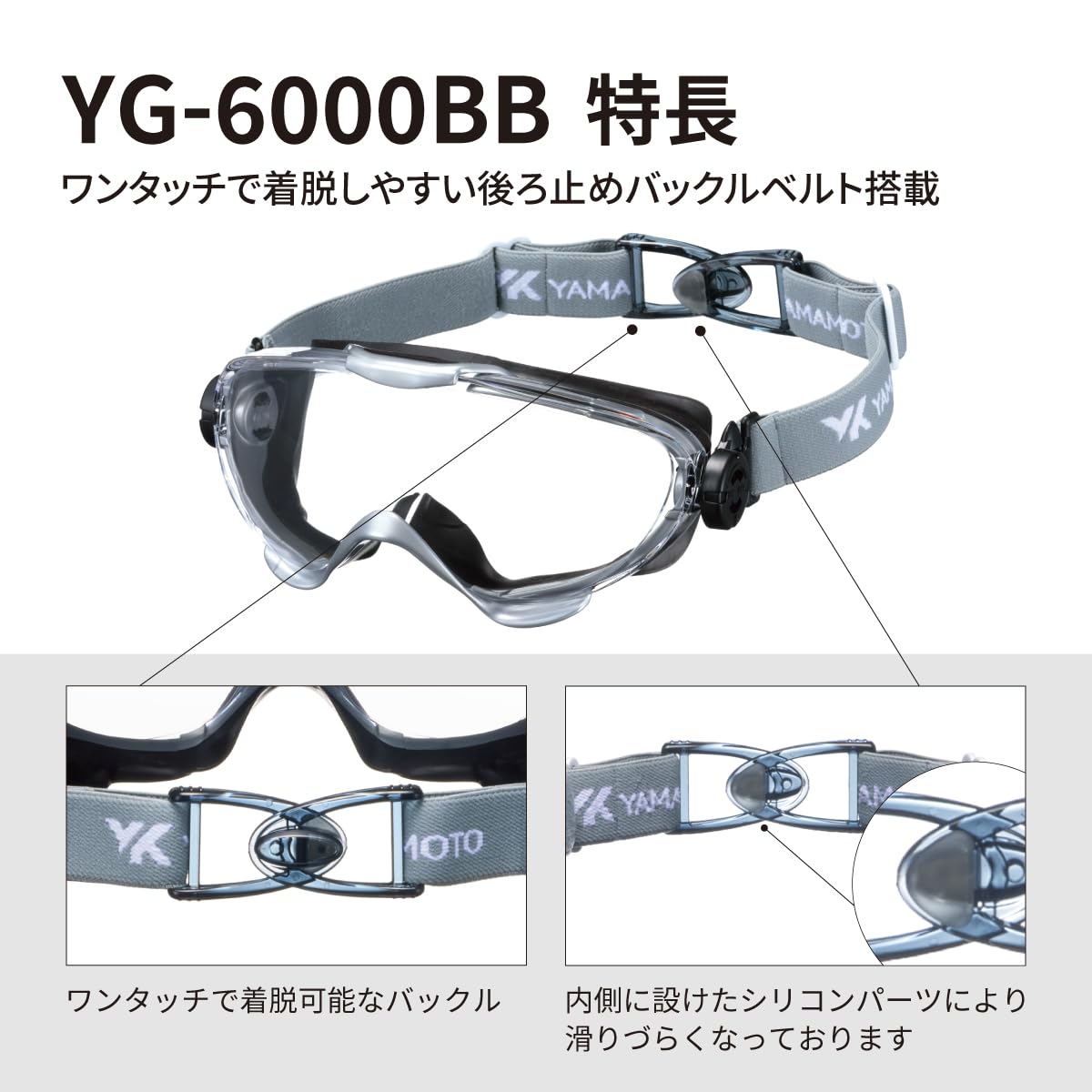 [山本光学] 保護ゴーグルYG-6000BB 着脱しやすい後ろ止めバックルベルト キズに強い くもり止め 日本製 JIS 紫外線カット