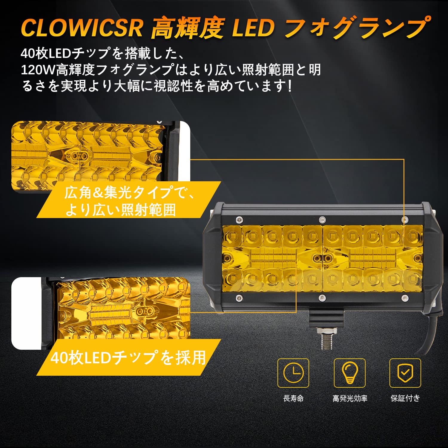 CLOWICSR 高輝度 フォグランプ LED作業灯 デッキライト ワークライト イエロー(3000K) 120W 12V-48V対応 [各種バイク/車に対応 雨/雪/霧にも高い視認性] 爆光 IP67防水 防塵 防震 前照灯 2個セット