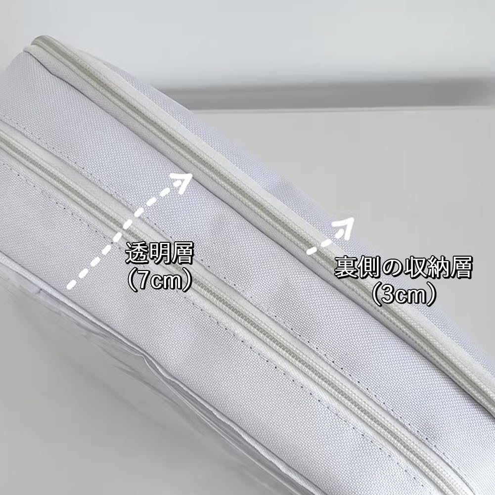 【外観】四角痛バッグは片面の透明デザイン、内部に見せたいアイテムを好みにアレンジでき、水と塵からぬいぐるみなどを保護しくれます。二層は透明層や収納層のデザイン、ジッパー式、外側は透明層、裏側は収納層、お出かけに便利です。