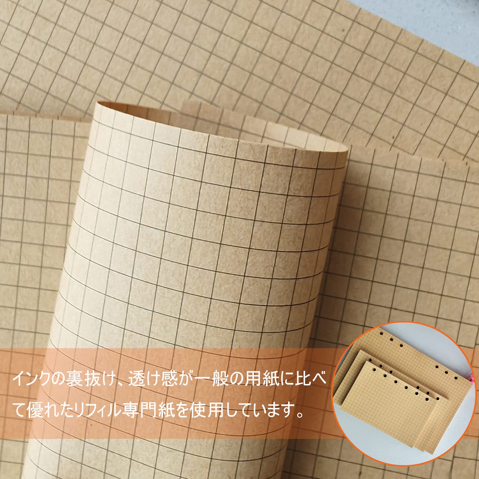 システム手帳リフィル A5サイズ 手帳リフィル 5mm方眼 DY.2ten 6穴 160枚入 ノート ビジネス手帳 ルーズリーフ用 クラフト紙