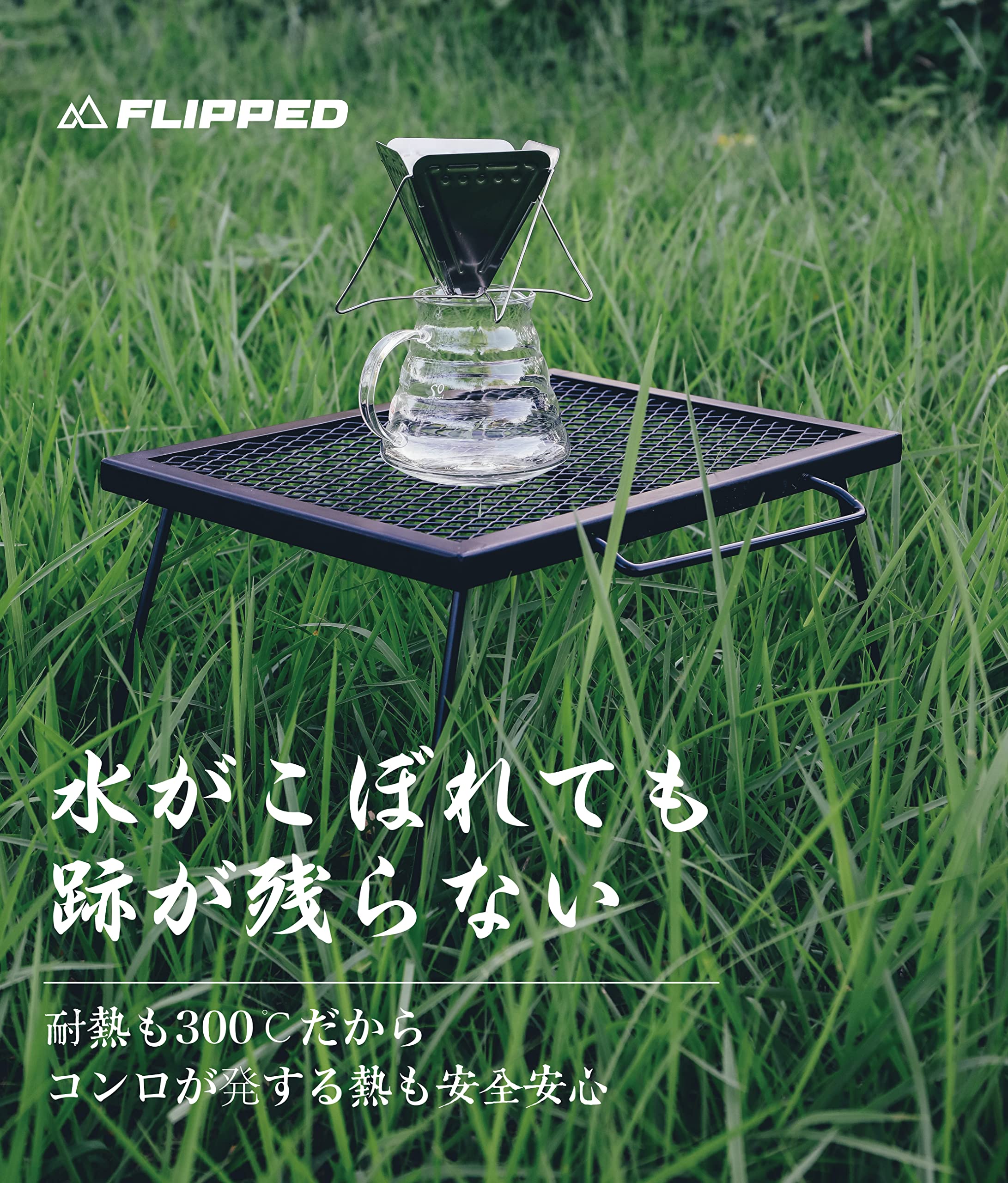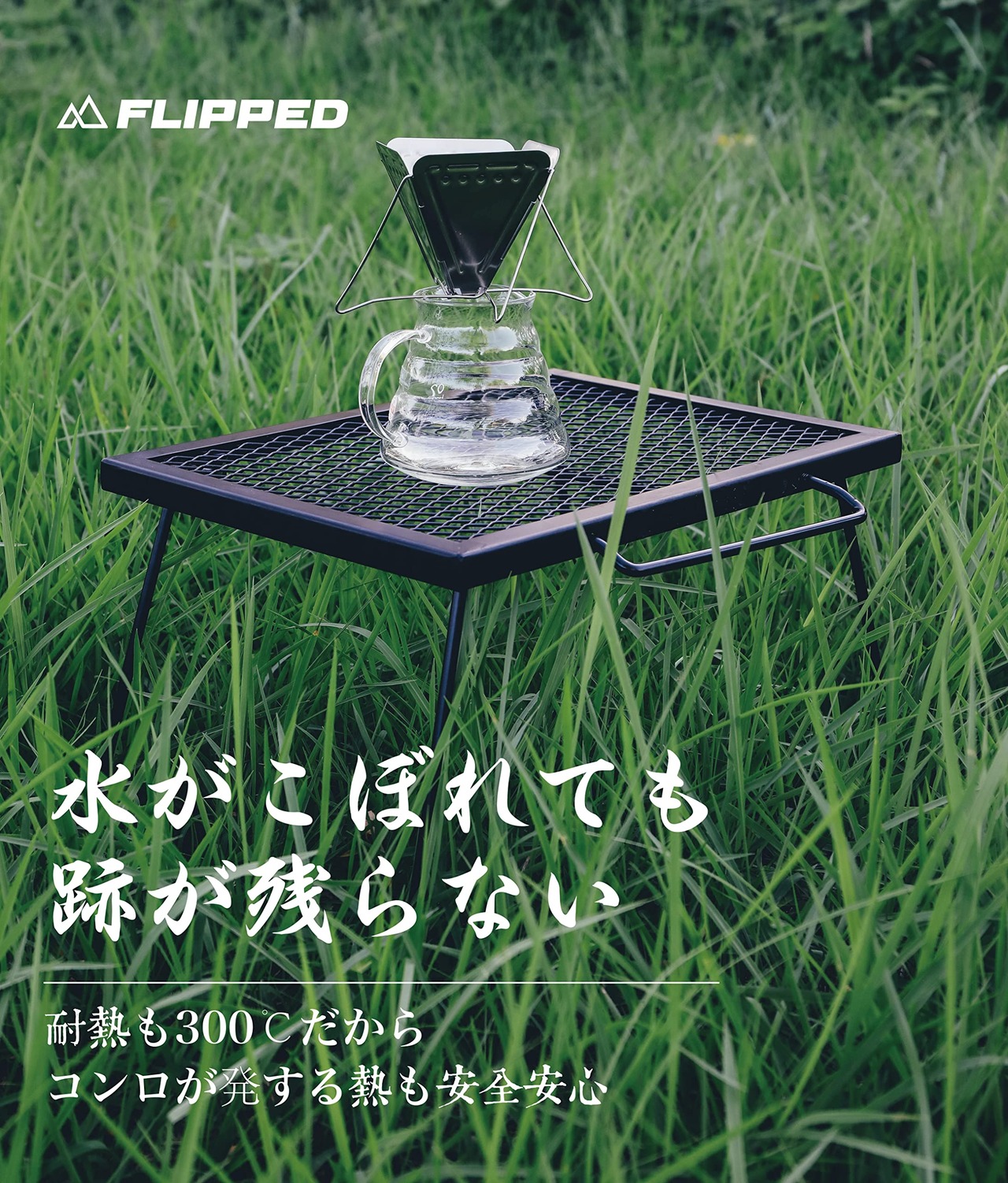 FLIPPED メッシュテーブル スチールテーブル 折りたたみ アウトドア キャンプ用品 専用キャリーバッグ付 43×32×26cm Black